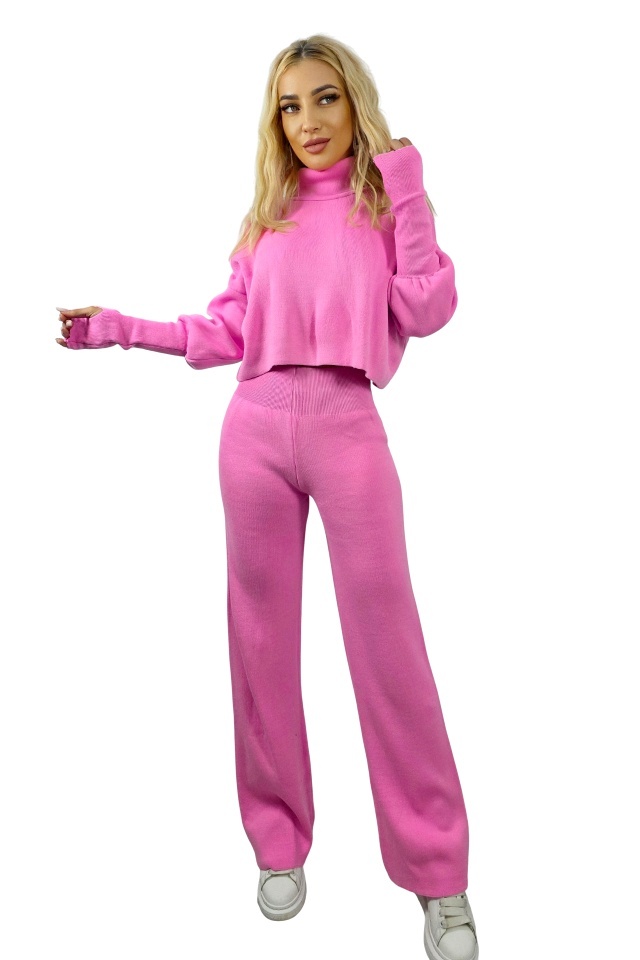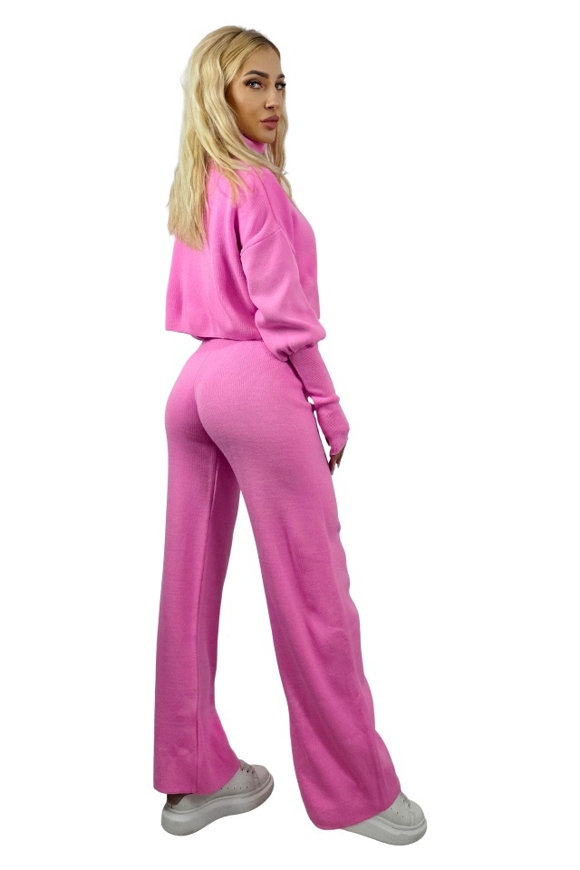 Compleu cu lana COMFY, bluza cu mansete supradimensionate si pantaloni, Roz, Marime S/M/L