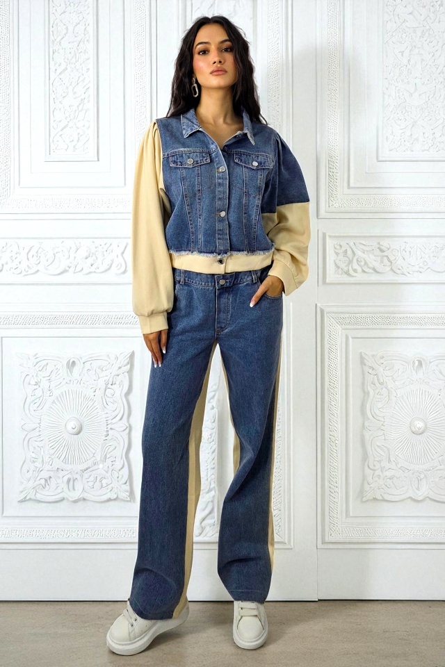 Samya – casual autentic, reinterpretat modern. Outfit relaxat, design original. Compleul casual Samya este un mix creativ între stil urban și confortul materialelor naturale. Pantalonii lungi au un design original, cu panou de blugi pe partea frontală ce adaugă un aer tineresc și nonconformist, în timp ce spatele este realizat din bumbac cu textură uni, oferind lejeritate și libertate de mișcare. Contrastul dintre cele două materiale creează un efect vizual modern și plin de personalitate. Jacheta scurtă completează perfect ansamblul, fiind construită în același joc de panouri: denim în partea frontală, pentru un look cool, și textură simplă în spate, pentru un echilibru vizual armonios. Croiala este practică și versatilă, cu deschidere totală și închidere cu nasturi metalici argintii, care adaugă un detaliu modern și urban. Samya este compleul ideal pentru zilele relaxate, fiind potrivit atât pentru plimbări, cât și pentru ieșiri în oraș. Este un outfit care îmbină casualul clasic cu accentele de design contemporan, oferind libertate, stil și o notă inconfundabilă de originalitate. Caracteristici trening: - jacheta scurta cu croi lejer si inchidere cu butoni argintii - buzunare frontale decorative si guler cu revere - panouri din denim aplicate pe zona frontala cu efect realist - pantaloni lejeri cu repere din denim si buzunare practice, laterale - susținerea este realizată de betelie pe elastic in talie și fixare suplimentara cu snur reglabil la baza cracului - manșete elastice la mâneci - model prezent în doua variante cromatice - material calitativ cu grad ridicat de confort Compozitie panouri din denim: 90% bumbac, 10% poliester; Compozitie panouri textil: 85% bumbac, 15% poliester; Marimea universala S/M compatibila cu masurile S sau M! Eticheta produsului contine informatii esentiale referitoare la intretinerea si spalarea corecta a articolelor vestimentare. Imaginile Fashionforyou au caracter informativ, iar nuanta, tonul si intensitatea culorii pot varia in functie de monitor/ecran telefon.