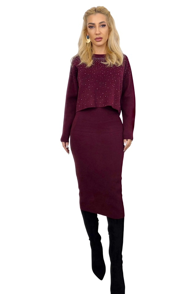 Caryne – piesa care definește eleganța relaxată. Două piese, o eleganță continuă. Compleul Caryne îmbină lejeritatea unei ținute casual cu accentele elegante ale detaliilor artizanale. Realizat din tricot moale, elastic și plăcut la atingere, setul este format dintr-o rochie midi bodycon, cu bretele medii care evidențiază linia umerilor, și o bluză scurtă oversize, cu mâneci lungi, pentru un efect vizual echilibrat și modern. Partea frontală a bluzei este accesorizată integral cu cristale artizanale, dispuse atent pentru a crea o strălucire subtilă, dar plină de personalitate. Textura fină a tricotului se adaptează ușor la formele corpului, oferind libertate de mișcare, confort și o ținută impecabilă în orice moment al zilei. Este alegerea ideală pentru femeia care dorește un look relaxat, dar plin de rafinament. Poate fi purtat atât în contexte casual, cât și la evenimente de seară, păstrând mereu o linie elegantă și o prezență sigură. Caracteristici compleu: - Material: tricot elastic, moale, cu textură fină - Format: rochie midi bodycon fara inchidere + bluză oversize cu mânecă lungă - Accesorii: cristale artizanale aplicate frontal - Croială bodycon: echilibru între lejeritate și feminitate - Bretele medii , pentru o linie elegantă a umerilor - Confort termic moderat , ideal pentru tranziția de sezoane - model prezent in colectie cromatica Compozitie material: 20% poliester, 30% vascoza, 40% poliamida, 10% elastan; Marimea universala S/M compatibila cu masurile S sau M! Eticheta produsului conține informații esențiale referitoare la întreținerea și spălarea corectă a articolelor vestimentare. Imaginile Fashionforyou au caracter informativ, iar nuanta, tonul si intensitatea culorii pot varia in functie de monitor/ecran telefon.