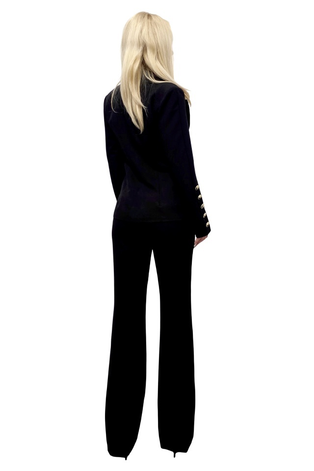 Costumul care definește profesionalismul. Clasic, curat, mereu actual. Costumul elegant office Violetta este definit de echilibrul perfect dintre stilul profesional și feminitatea discretă. Format din sacou cu butoni și pantaloni lungi cu croi drept , acest ansamblu oferă o linie clară și rafinată, ideală pentru mediul de birou, întâlniri de afaceri sau evenimente formale. Sacoul are o construcție atentă, care urmează natural forma corpului și creează o siluetă elegantă, în timp ce pantalonii adaugă o notă clasică prin croiul drept și proporțiile echilibrate. Materialul ușor și plăcut la atingere asigură confort pe durata întregii zile, fără a compromite eleganța. Violetta este alegerea perfectă pentru femeia care apreciază ținutele curate, bine definite, și care dorește să inspire încredere și profesionalism prin fiecare detaliu. Caracteristici costum: - sacou midi, cambrat, inchidere cu nasture stilizat, bicolor si buzunare decorative - sacou cu captuseala satinata si inchidere intr-un punct - buretei suport la umeri pentru o liniatura optima - revere ample, ascutite cu tipar crestat - maneca lunga cu nasturi stilizati bicolori in partea inferioara - pantaloni cu talie inalta si croiala dreapta - pantalonii au buzunare laterale - inchidere cu fermoar si nasture - model prezent in mai multe variante cromatice Ingrijire : Se recomanda curatarea profesionala! Compozitie material: 96% poliester, 4% elastan Eticheta produsului conține informații esențiale referitoare la întreținerea și spălarea corectă a articolelor vestimentare. Imaginile Fashionforyou au caracter informativ, iar nuanta, tonul si intensitatea culorii pot varia in functie de monitor/ecran telefon.