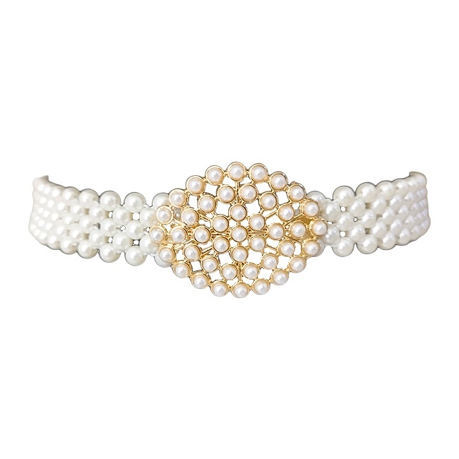 Curea elastica din perle Pearly B, cu catarama metalica decorativa, Gold Ovalyn