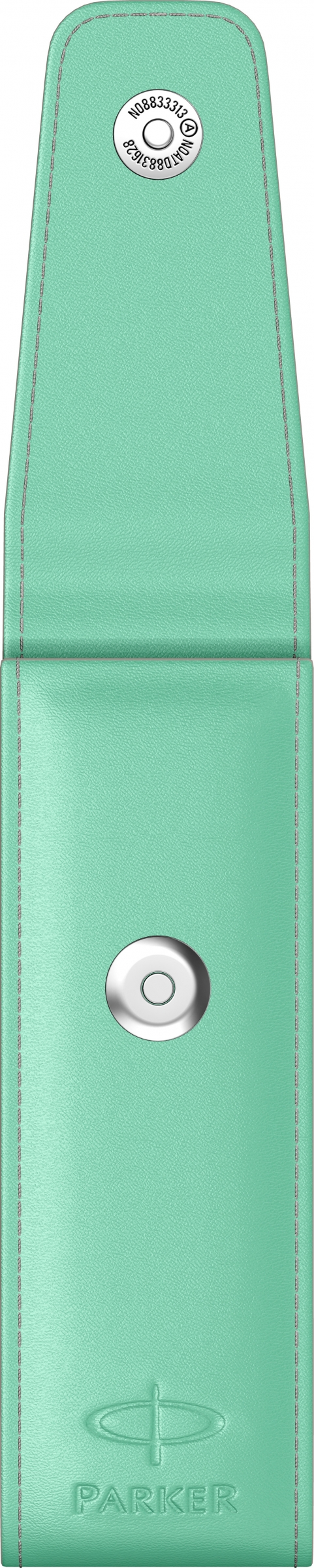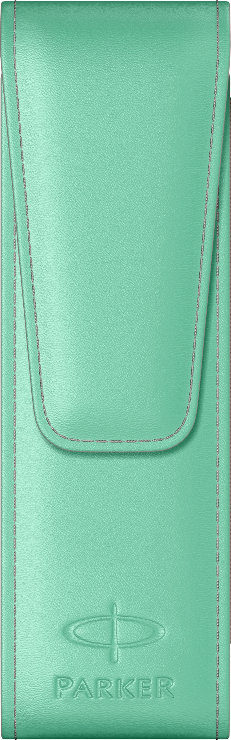 Etui 2 instrumente de scris, piele nappa verde menta, embosata cu sigla PARKER, inchidere cu magnet