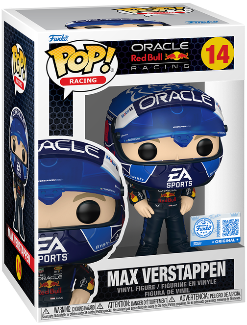 Pe locuri, fiti gata! POP! Max Verstappen vrea sa ocupe locul 1 in colectia ta! Apasa pedala pana la fund si adauga acest pilot Oracle Red Bull Racing cu casca sa editia GP of USA in colectia ta POP! Racing. Imbunatateste-ti lineup-ul de motorsport adaugand acest pilot exclusiv ca urmatoarea completare pe grila ta. Figurina din vinil are o inaltime de aproximativ 10 cm.
