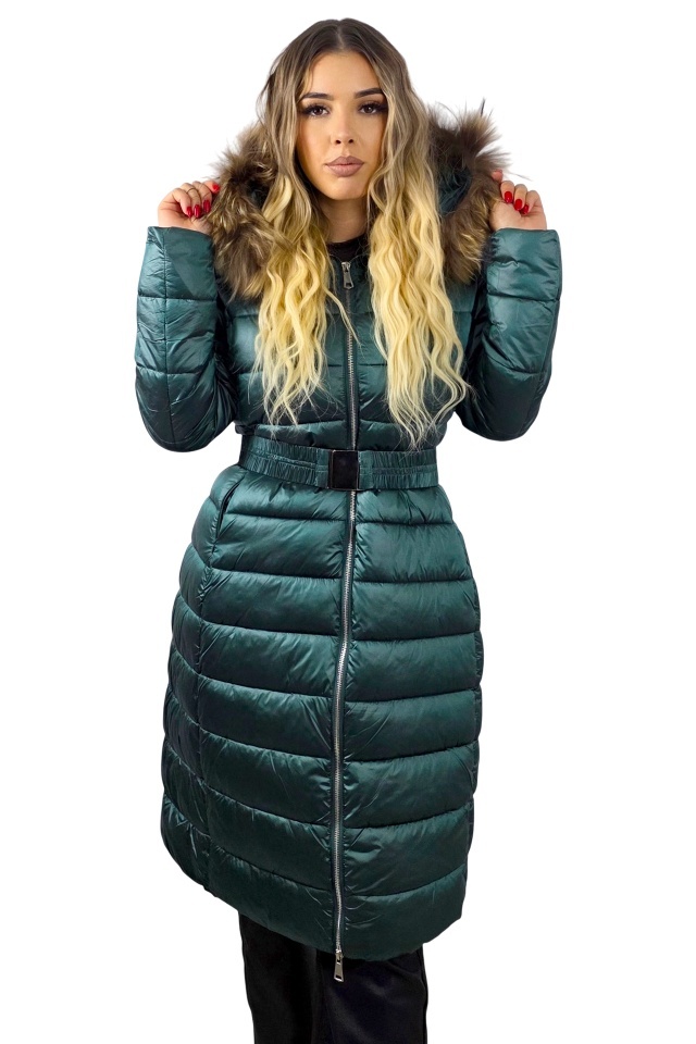 Detaliile care definesc eleganța iernii. HYRA – confort termic cu personalitate. Geaca HYRA reușește să unească perfect eleganța urbană cu funcționalitatea unei piese esențiale pentru sezonul rece. Cu o lungime medie ce oferă protecție optimă împotriva frigului și o croială ușor cambrată, această geacă evidențiază talia printr-un cordon elastic integrat, menținând în același timp libertatea de mișcare. Detaliul care o diferențiază este gluga detașabilă, conturată cu blană naturală pe margine, oferind un aspect rafinat și o protecție excelentă în zilele reci. Închiderea cu fermoar frontal și buzunarele laterale cu fermoar adaugă un plus de utilitate, păstrând designul curat și modern. Materialul matlasat asigură confort termic ridicat, păstrând căldura fără a încărca vizual. HYRA este geaca ideală pentru femeia care caută o piesă echilibrată între stil, funcționalitate și eleganță discretă, potrivită pentru purtare zilnică sau ținute casual-elegante. Caracteristici geaca: - lungime: medie, potrivită pentru confort termic și libertate de mișcare - glugă: detașabilă, cu blană naturală pe contur - buzunare: două laterale, prevăzute cu fermoar - inchidere cu fermoar - talie: curea elastica pentru contur feminin - material: matlasat, ușor, dar călduros - confort: nivel ridicat datorită texturii flexibile și fine - compozitie material: 55% poliester, 45% nylon Ingrijire : Se recomanda curatarea chimica profesionala Culoarea/modelul blănii sunt unice, astfel încât este posibil să existe mici diferențe de nuanta, întrucât este blană naturală. Imaginile Fashionforyou au caracter informativ, iar nuanta, tonul si intensitatea culorii pot varia in functie de monitor/ecran telefon.