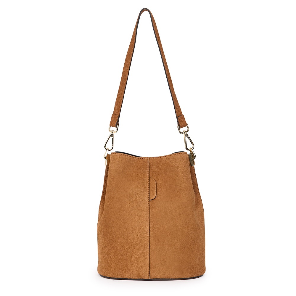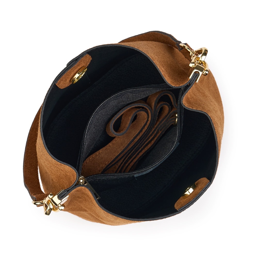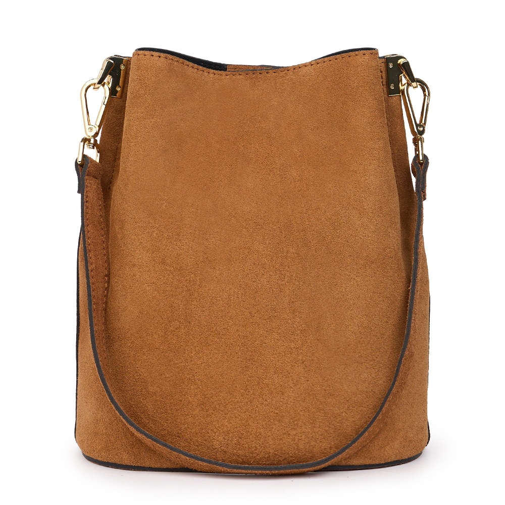 Geanta din piele naturala Milena coniac este un accesoriu elegant si versatil, ideal pentru un stil modern, discret. Realizata din piele intoarsa, cu un aspect deosebit de elegant, geanta impresioneaza prin textura fina si finisajele impecabile. Forma sa tip „bucket bag” ofera un spatiu generos pentru obiectele esentiale de zi cu zi, in timp ce sistemul de inchidere sigur si cureaua de umar reglabila asigura confort si functionalitate. MATERIAL: piele naturala DIMENSIUNI (inaltime x lungime x latime): 28x24x17cm COMPARTIMENTE: doua compartimente separate de un buzunar cu fermoar BUZUNARE: fara buzunare SISTEM DE PRINDERE: bretea de umar detasabila scurta (53 cm) + bretea de umar detasabila, reglabila (50-123cm) CULOARE ACCESORII: argintiu