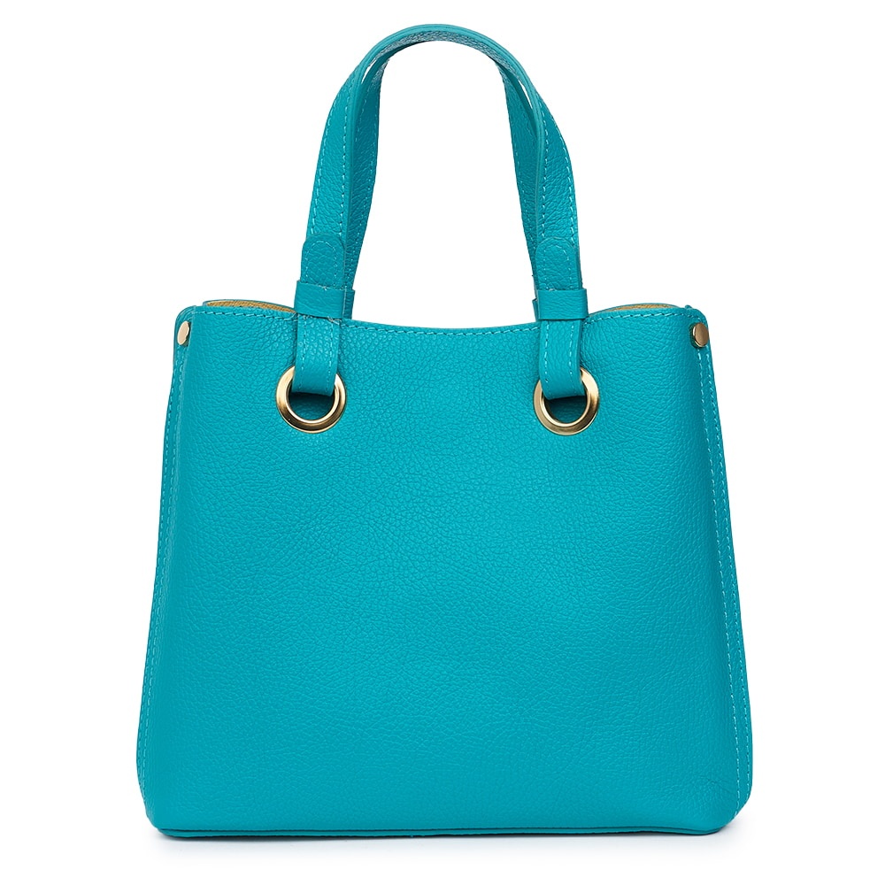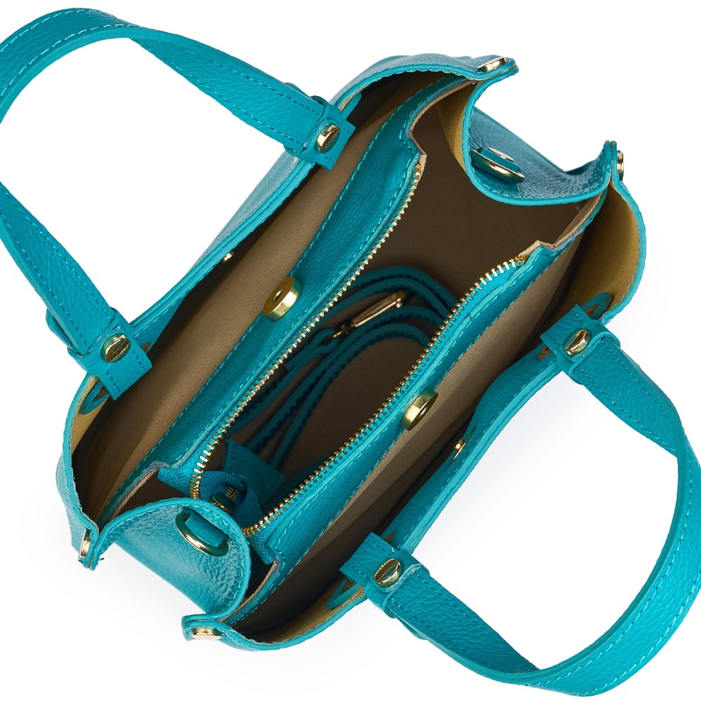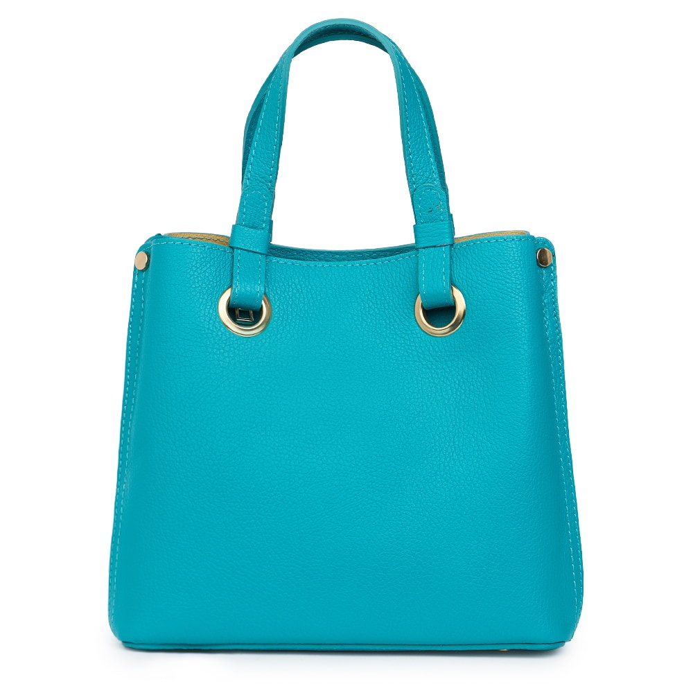 Geanta dama din piele naturala Ilona turcoaz este un model cu dimensiuni compacte dar bine compartimentat. La interior dispune de trei compartimente, dintre care unul inchis cu fermoar si doua inchise cu capse magnetice. Este un model cu linii clasice, foarte practic, ideal pentru utilizare de zi cu zi. MATERIAL: piele naturala DIMENSIUNI (inaltime x lungime x latime): 24x25x12cm DIMENSIUNI MANER: inaltime: 16cm; lungime: 35cm COMPARTIMENTE: trei compartimente BUZUNARE: fara buzunare SISTEM DE PRINDERE: doua manere ce permit purtarea pe brat sau in mana + bretea de umar detasabila, reglabila (50-110cm) CULOARE ACCESORII: auriu