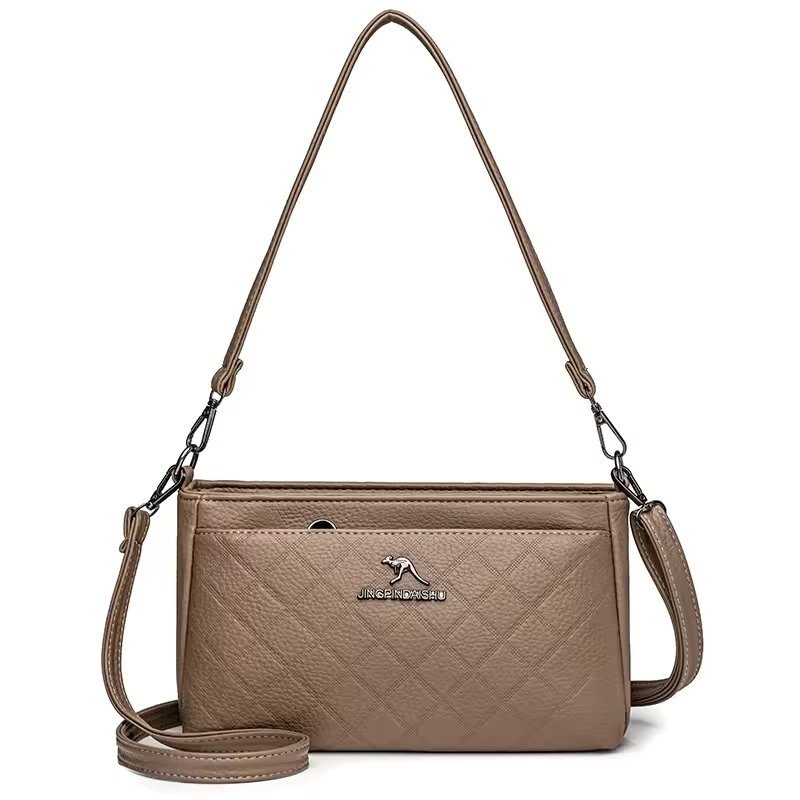 interior captusit; 2 compartimente principale; 1 buzunar separator cu fermoar; 1 bareta ajustabila; material: piele ecologica; dimensiuni: 20 x 8 x 14 cm. Important : Culoarea produsului poate varia ușor datorită luminozității monitorului. Din cauza varietății instrumentelor de măsură, pot exista ușoare erori de cm.