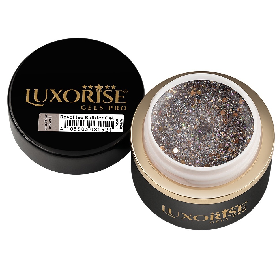 Imbratiseaza inovatia, exploreaza creativitatea, atinge perfectiunea cu Gel UV Constructie Unghii RevoFlex LUXORISE 15ml, Champagne Radiance! Formula revolutionara, premium, auto-nivelanta, rezistenta si flexibila a fost conceputa exclusiv pentru tehnicienii de unghii. Astfel, este un gel de constructie cu proprietati excelente de modelare, ce optimizeaza la maxim procesul de constructie al unghiilor. Gelul de constructie LUXORISE prezinta o adaptabilitate si aderenta excelenta de lucru, ce il face usor de folosit in diverse tehnici de constructie a unghiei - cu sablon, cu tipsuri LUXORISE Smart forms, direct pe unghiile naturale, fibra de sticla, etc. In acelasi timp, este un gel cu o flexibilitate excelenta, usor de finisat, indiferent de forma unghiei - patrata, ovala, stiletto, migdala, etc. Vascozitatea este potrivita pentru o aplicare simpla cu rezultate exceptionale. Acum este simplu sa realizezi manichiuri delicate cu unghii lungi, subtiri si rezistente. Armonia dintre ingrediente ofera gelului o stabilitate crescuta. Acesta nu isi modifica culoarea in timp, nu se rupe, nu se fisureaza. Avantaje: - Formula super premium - Densitate medie - Aderenta excelenta - Auto-nivelant - Flexibilitate mare - Rezistenta crescuta - Fara miros intepator - Potrivit in diverse tehnici de constructie a unghiilor - Nu isi modifica culoarea in timp Informatii: Timp uscare - 60 secunde in lampa LED, 120 secunde in lampa UV