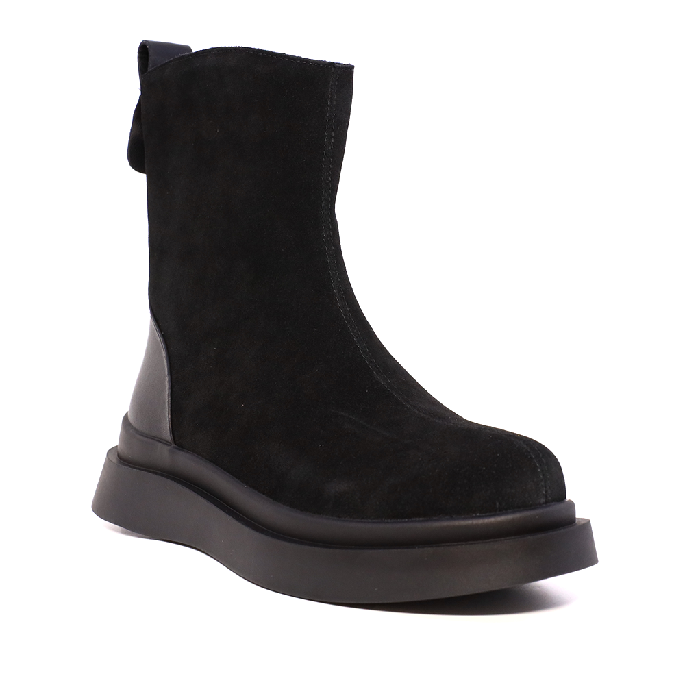 Material: Piele naturală, Piele întoarsă, Culoare: Negru, Stil: talpa joasa