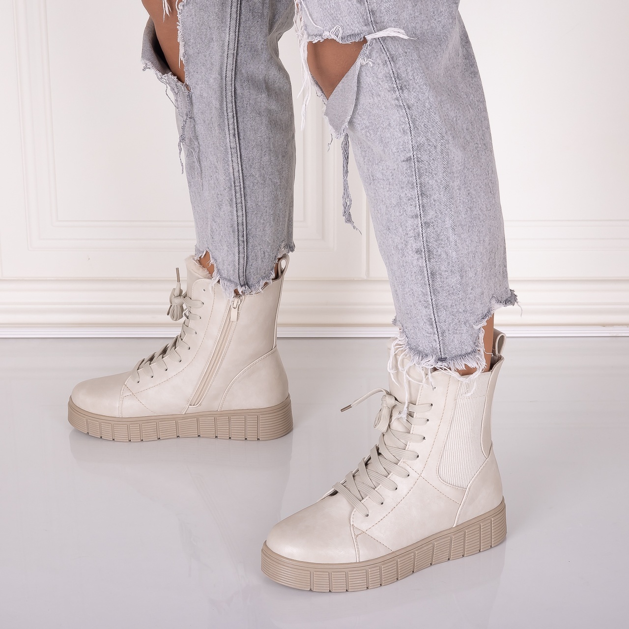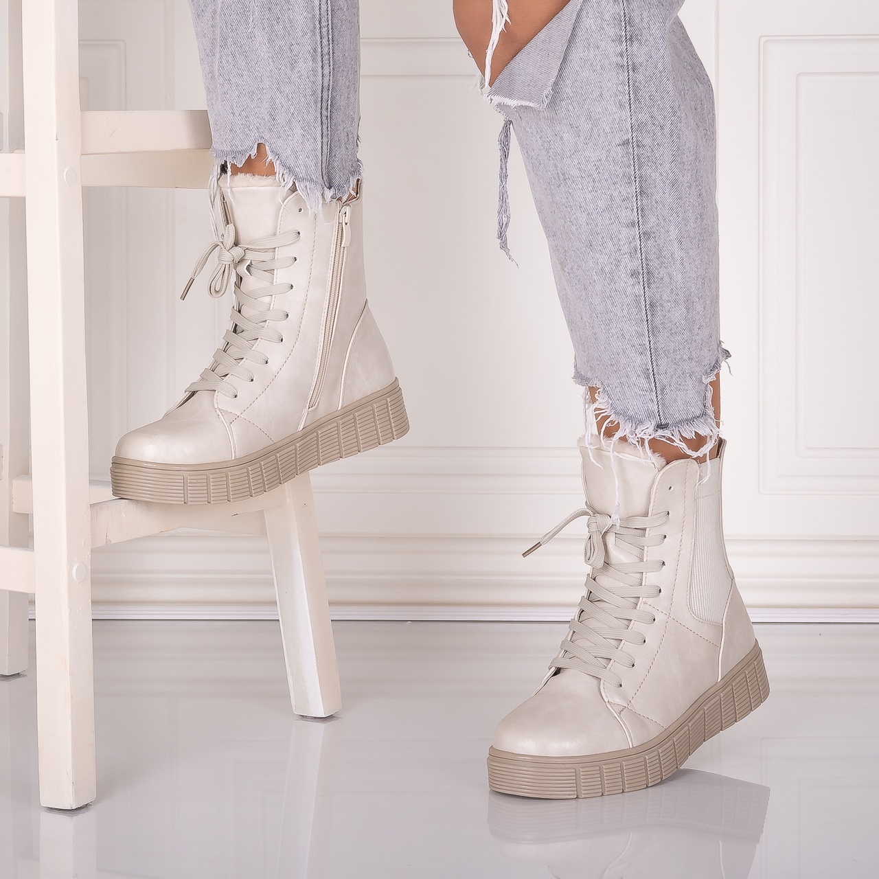Ghete dama cu siret si toc Bej din piele ecologica Mars