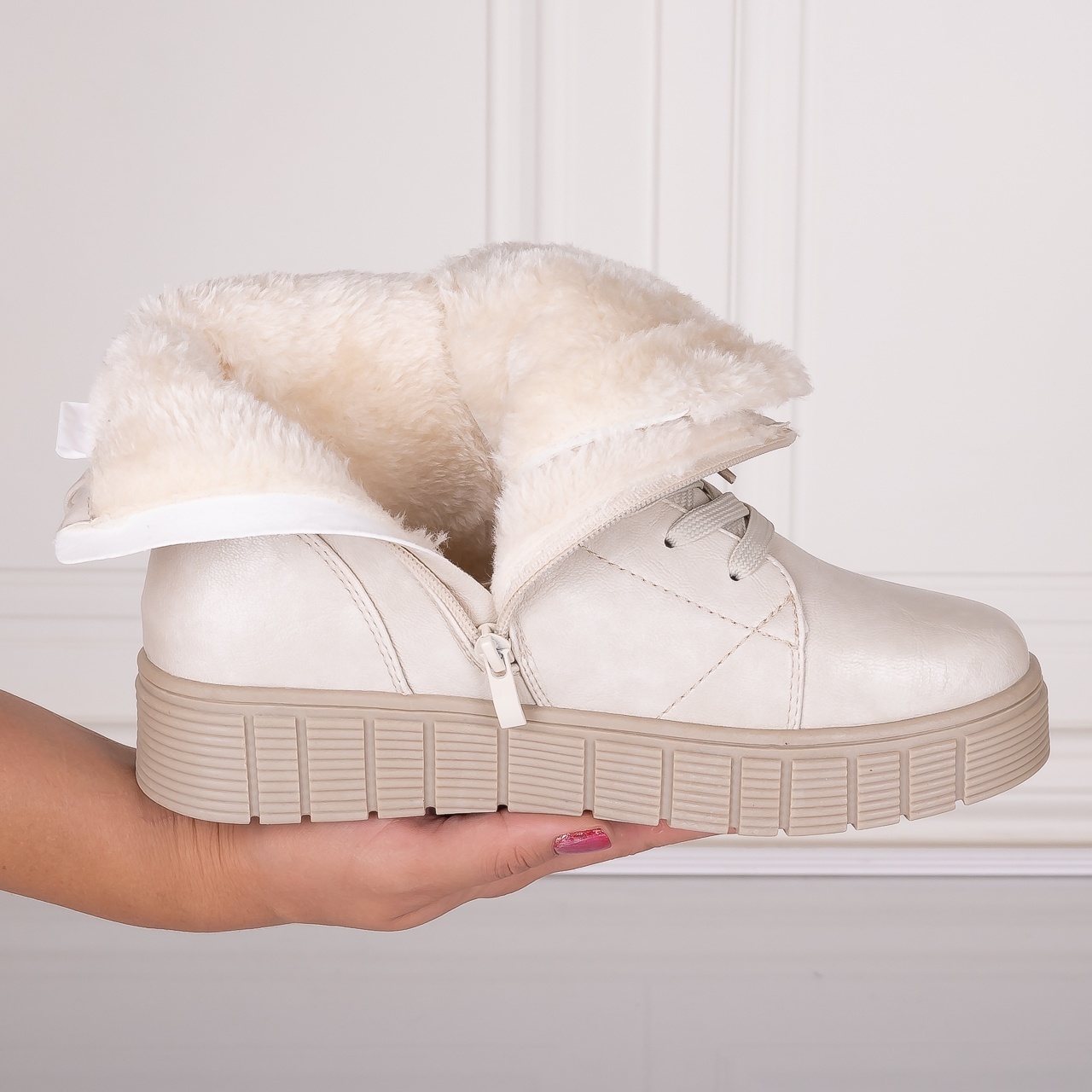 Ghete Dama Imblanite Bej din Piele Ecologica Jameria