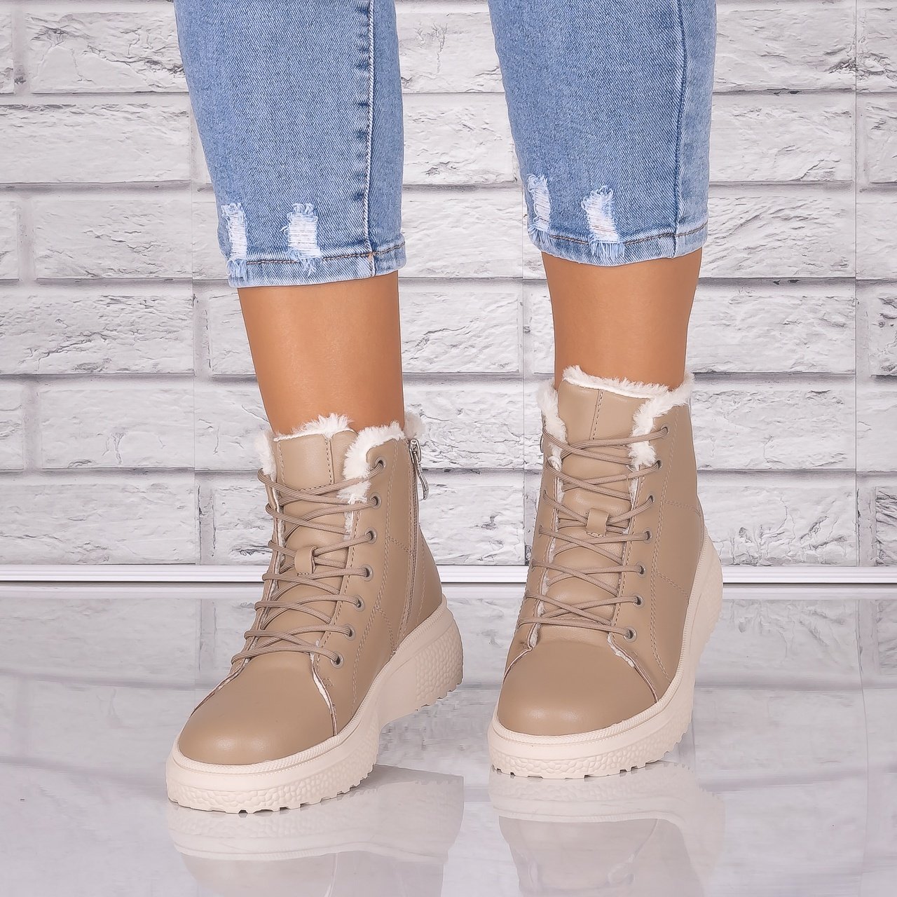 Ghete dama cu siret si toc Bej din piele ecologica Mars