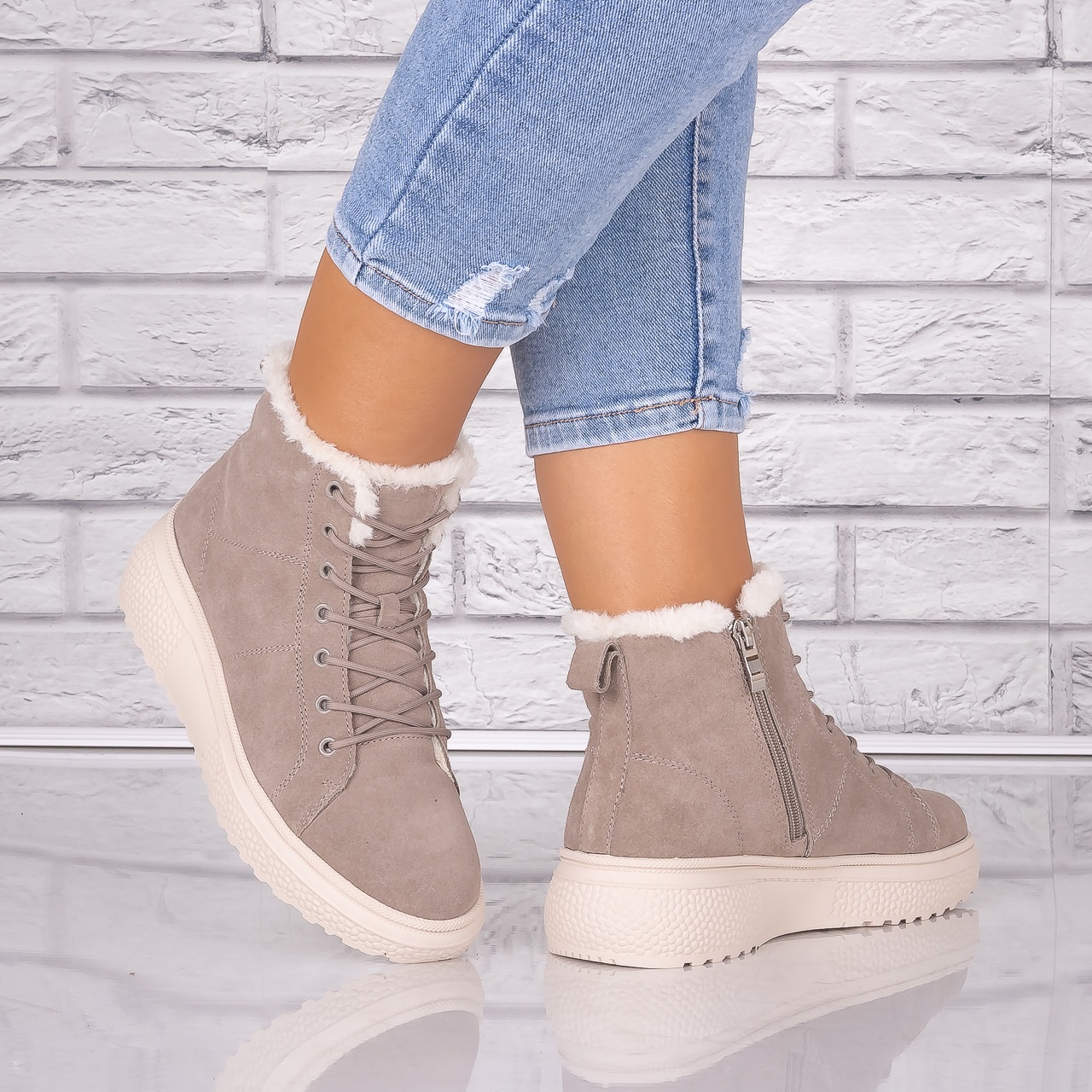 Ghete dama cu siret si toc Bej din piele ecologica Mars