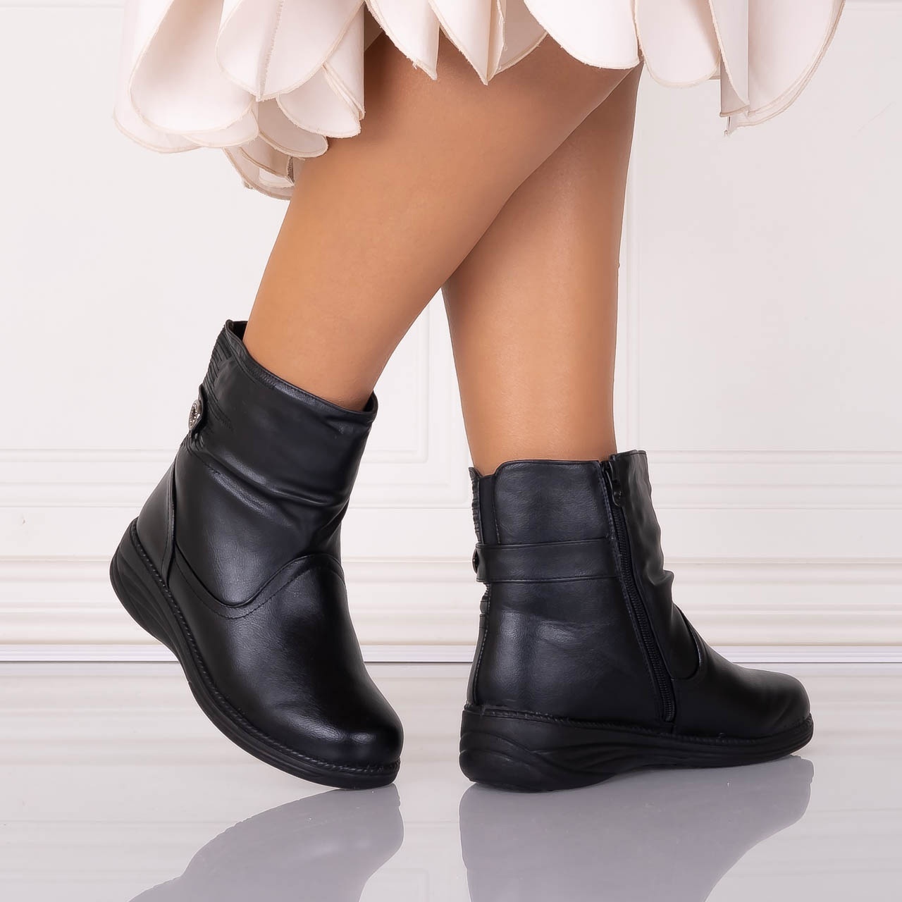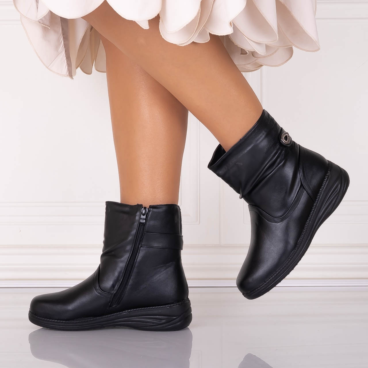 Botine Dama cu toc Negre din Piele Ecologica Aidala
