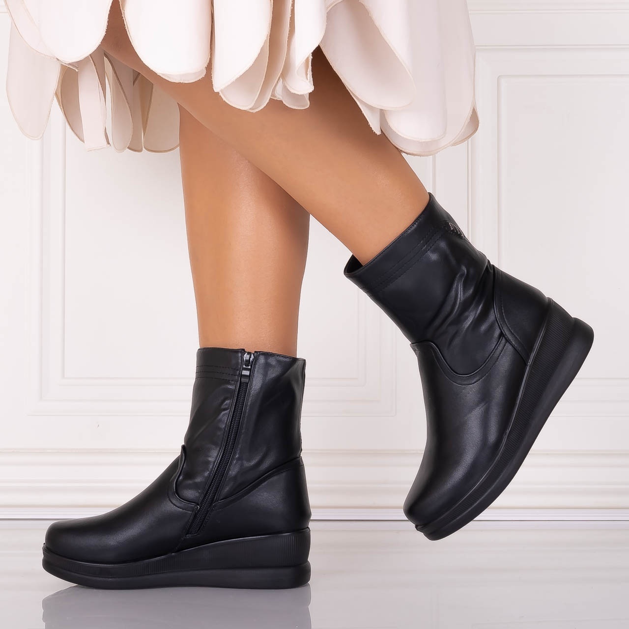 Botine Dama cu toc Negre din Piele Ecologica Aidala