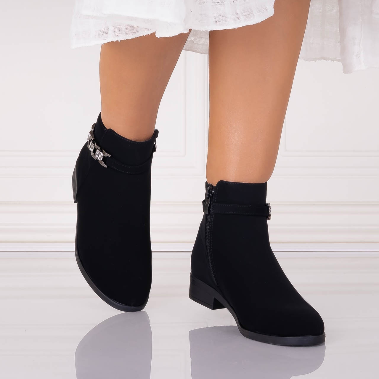 Botine Dama cu toc Negre din Piele Ecologica Aidala