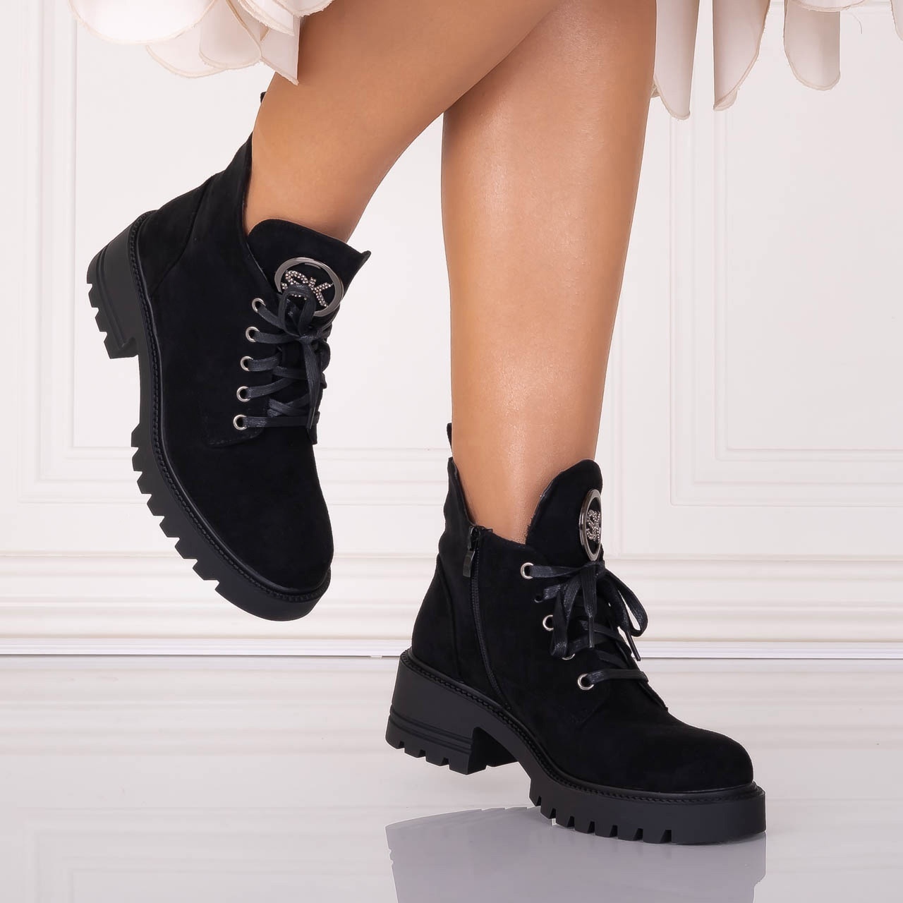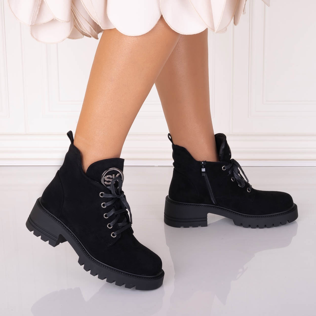 Botine Dama cu toc Negre din Piele Ecologica Aidala