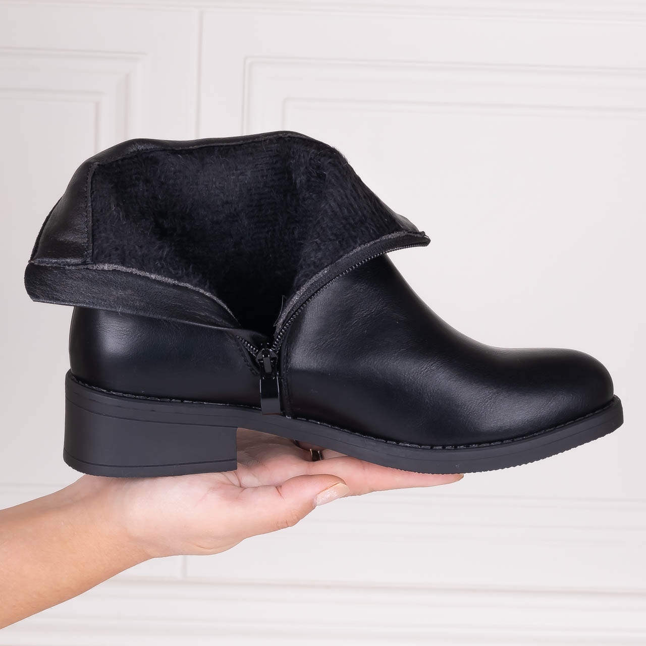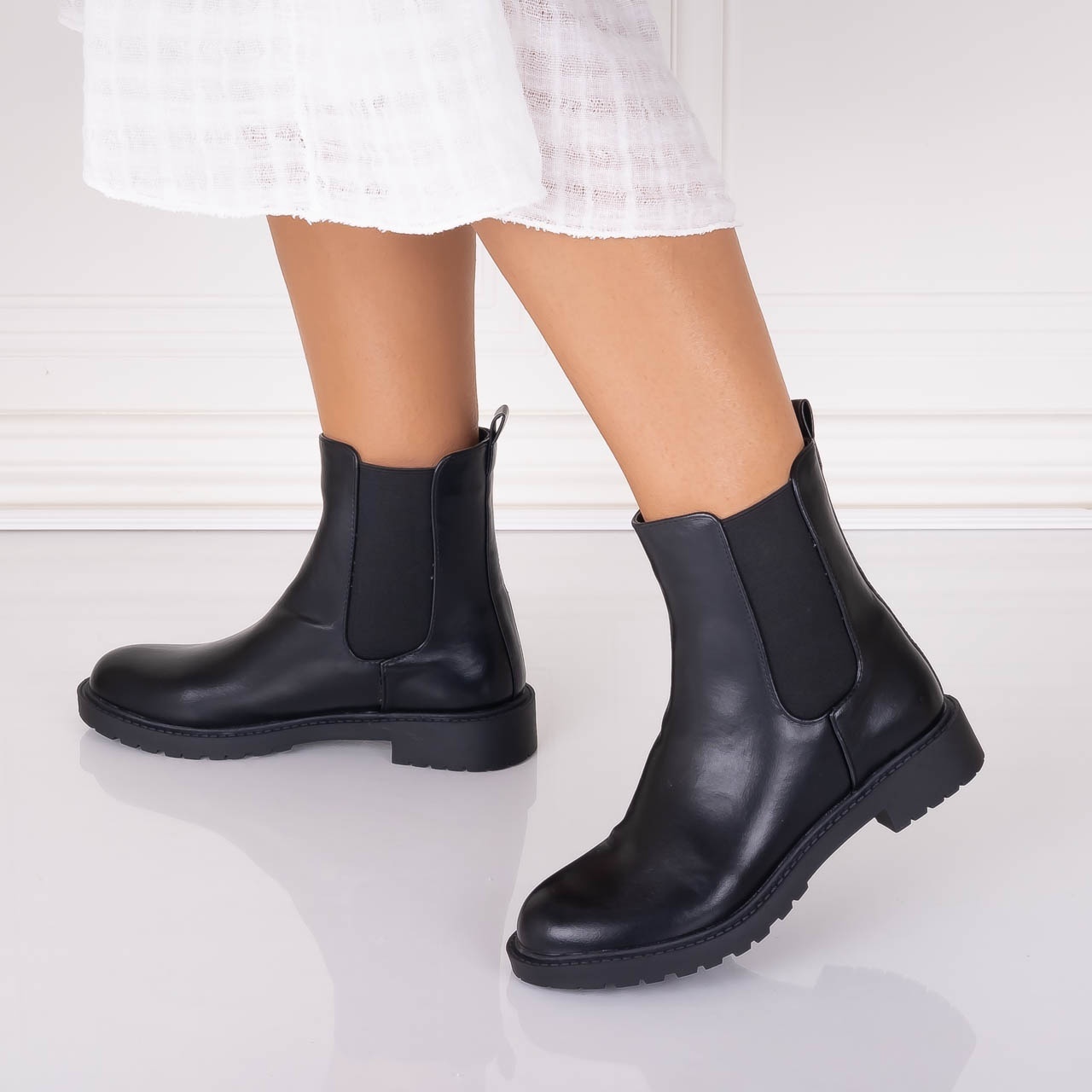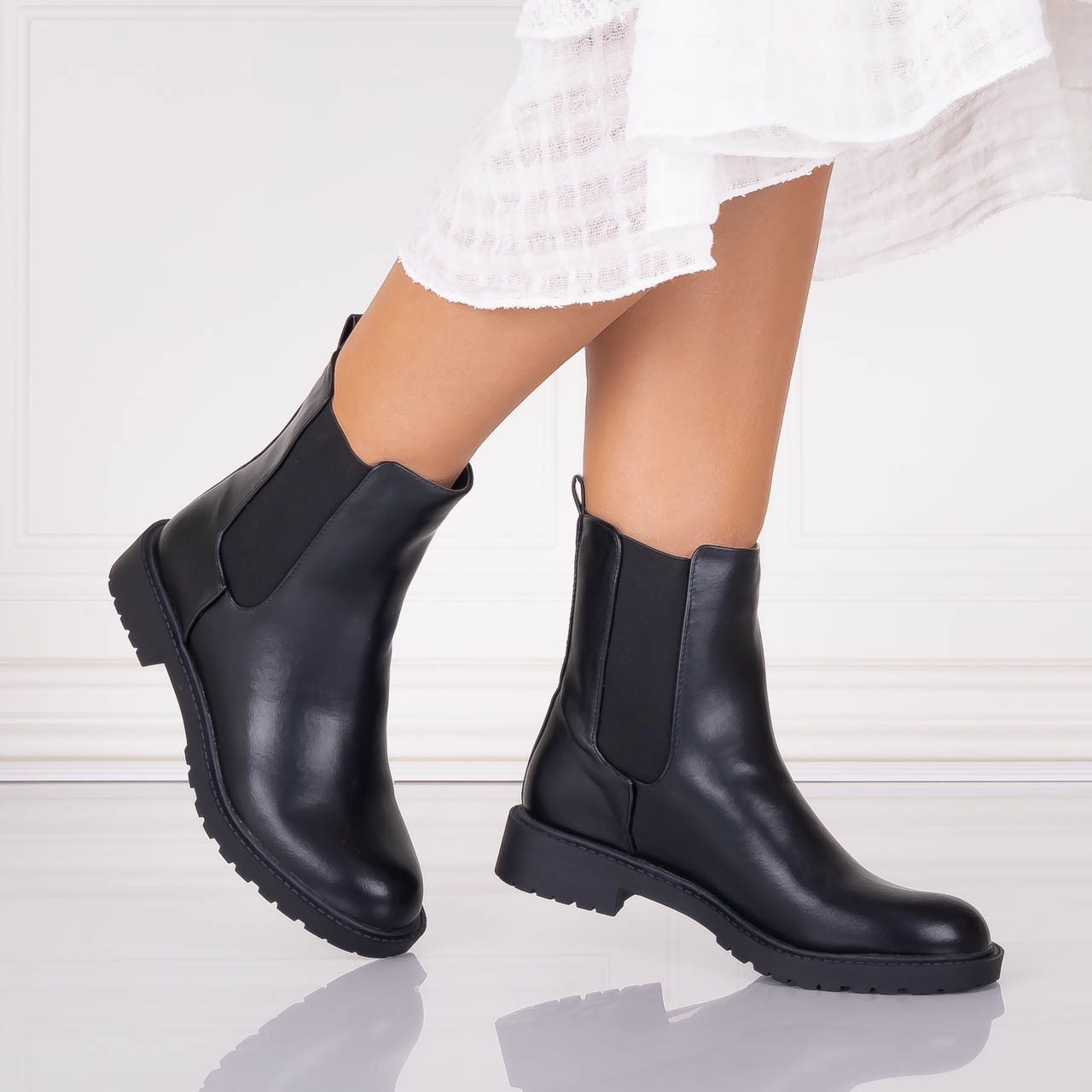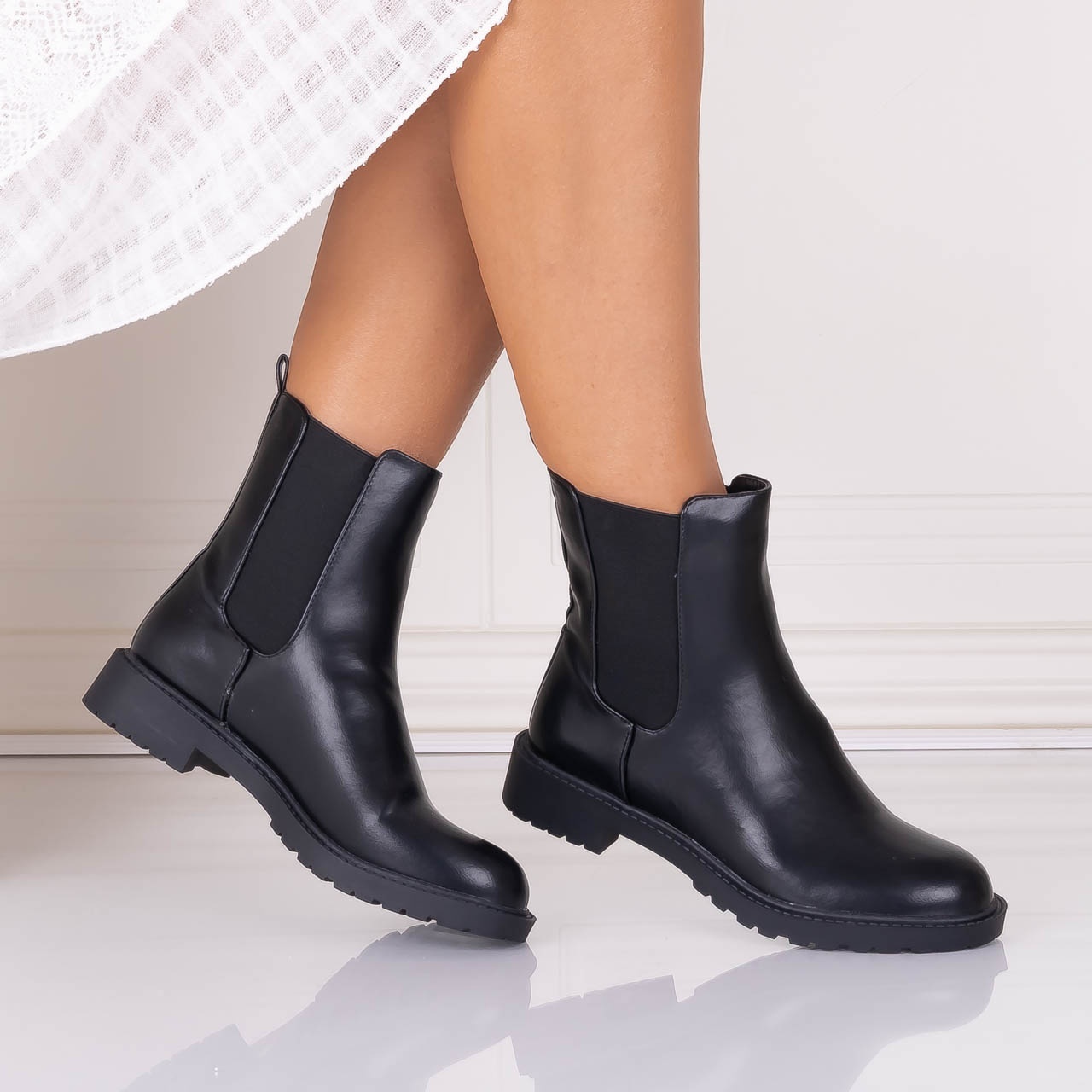 Botine Dama cu toc Negre din Piele Ecologica Aidala