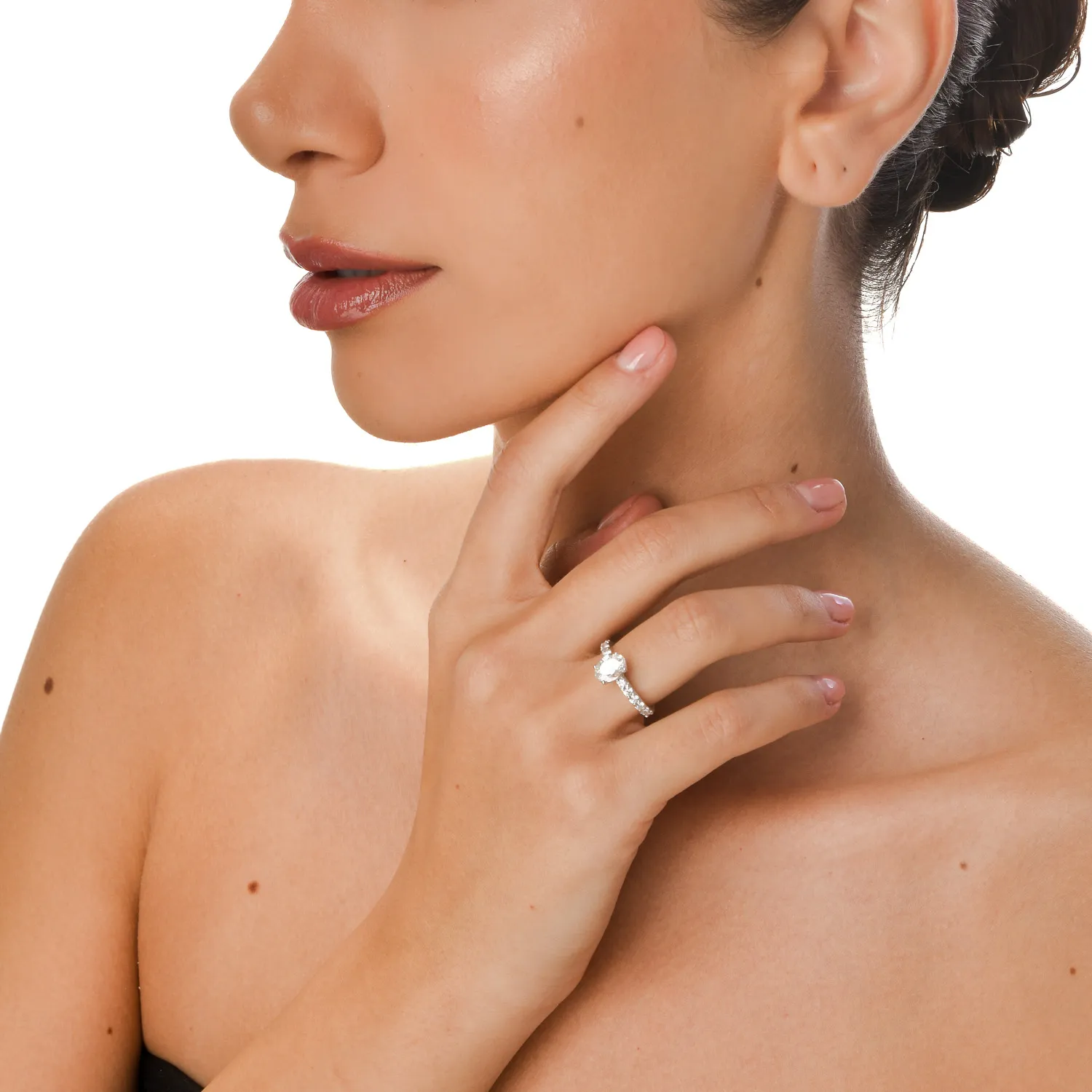 Cu un aer sofisticat si stralucire discreta, acest inel din aur alb cu diamante de 1.5ct create in laborator este definitia elegantei clasice. Diamantul central impresioneaza prin luminozitate, iar pietrele laterale adauga armonie si rafinament designului. O bijuterie versatila, potrivita atat pentru momente speciale, cat si pentru a completa un stil modern de zi cu zi. Descopera frumusetea autentica a bijuteriilor DAAR! Bijuteria face parte din colectia Lab Created Diamonds. Diamantele create in laborator sunt pietre pretioase concepute sub conditii de inalta presiune si caldura, identice cu cele ale diamantelor naturale.