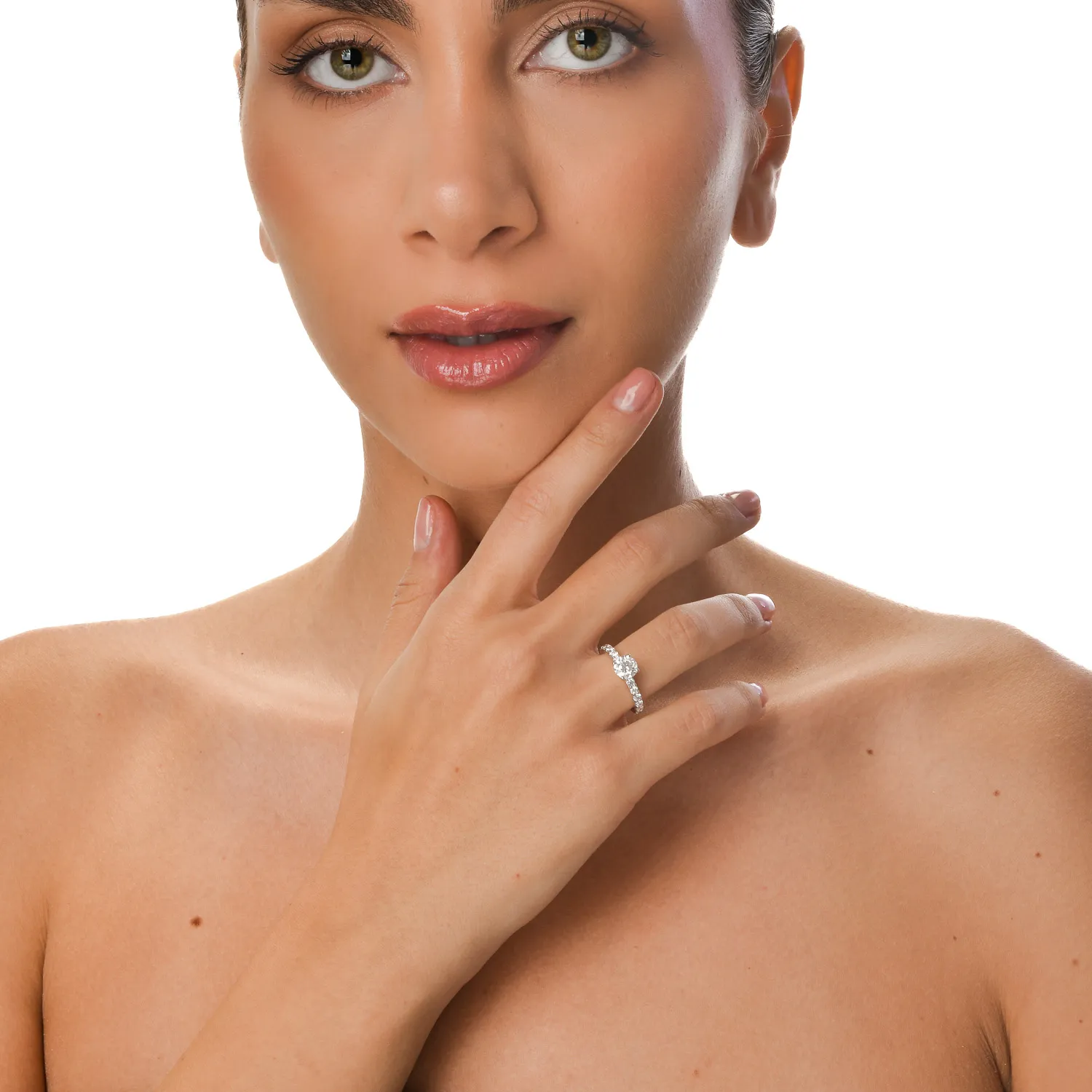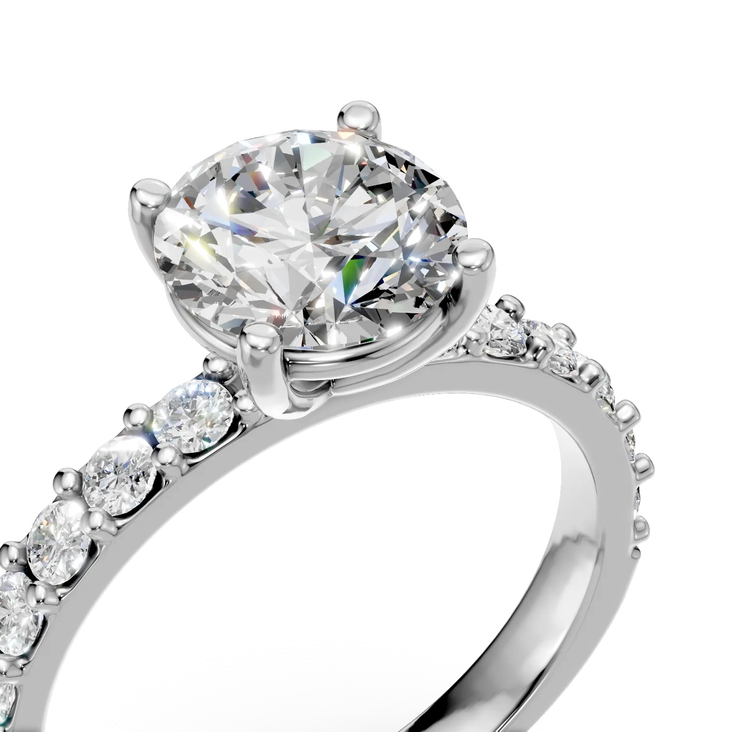 Delicat si stralucitor, acest inel din aur alb cu diamante de 1.5ct create in laborator imbina eleganta clasica cu un aer modern. Diamantul central atrage atentia prin luminozitate, iar pietrele laterale completeaza perfect designul sofisticat. Ideal pentru momente speciale sau pentru a adauga un plus de rafinament tinutelor tale. Descopera eleganta autentica a bijuteriilor DAAR! Bijuteria face parte din colectia Lab Created Diamonds. Diamantele create in laborator sunt pietre pretioase concepute sub conditii de inalta presiune si caldura, identice cu cele ale diamantelor naturale.