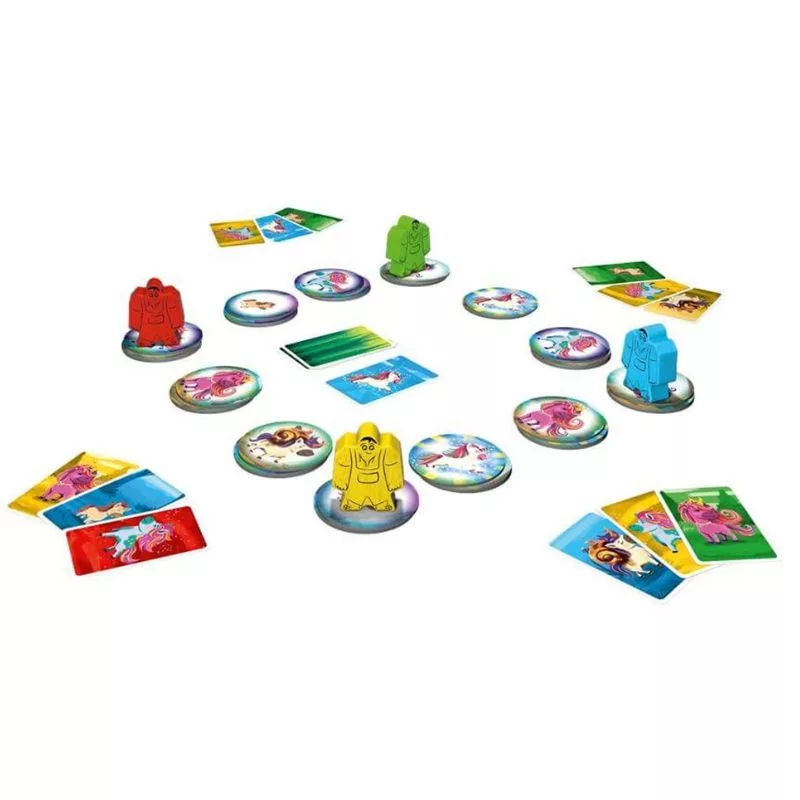 In timpul jocului, participantii joaca carti colorate pentru a trimite giganti in padure. Castiga jucatorul care colecteaza cei mai multi inorogi. Inorogii de diverse culori si forme ii fascineaza pe copii, in timp ce jocul le dezvolta abilitatile de recunoastere a culorilor si strategiile.Caracteristicile produsului:Joc de colectionare de inorogi plin de fanteziePentru 2-4 jucatoriDurata jocului: aprox. 20 de minuteVarsta recomandata: de la 4 aniCarti si figuri din lemnIlustratii vii si detaliate