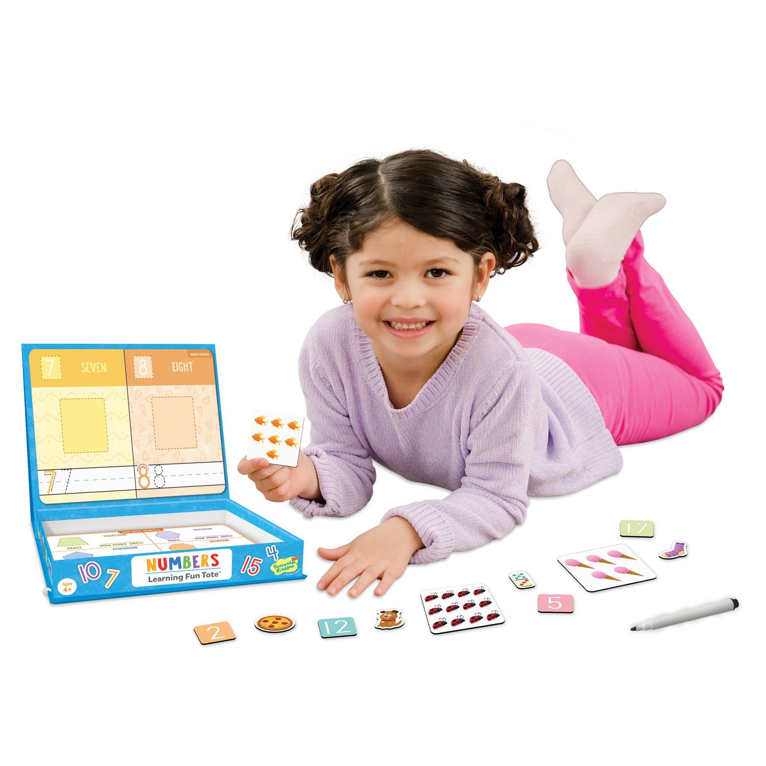 Un joc educativ perfect pentru a fi utilizat acasa sau in mediile educationale, oferind copiilor o modalitate interactiva si distractiva de a-si dezvolta abilitatile matematice intr-un mediu non-formal si captivant.Aceasta resursa captivanta pentru invatare timpurie este conceputa pentru a fi o modalitate distractiva si colorata prin care copiii pot explora lumea numerelor, formelor, numararii si multe altele. Cu magneti robusti, cartonase cu activitati si suprafete de tip scrie si sterge, acest joc ofera copiilor tot ceea ce au nevoie pentru a invata si a se distra in acelasi timp!Jucandu-se cu acest set, copiii pot exersa numaratul, trasarea formelor si crearea modelelor, toate intr-un mediu plin de culoare si distractie. Dezvoltarea abilitatilor de motricitate fina este incurajata prin manipularea magnetilor si a instrumentelor de scris.Setul include o varietate de componente pentru a ajuta la stapanirea conceptelor numerice importante si a abilitatilor matematice de baza - 80 de magneti, 11 cartonase cu activitati de invatare, 5 cartonase de potrivire a numerelor, 1 foaie cu modele, 2 cartonase numarare distractive, 1 cartonas punct cu punct, 1 cartonase cu forme, 1 cartonas de masurare /linie numerica si un marker special. De asemenea, este inclus un ghid pentru parinti pentru a oferi indrumare suplimentara in timpul activitatilor de invatare.Varsta recomandata: 4 ani+Avertisment: Pericol de sufocare. Piese mici. Nu este recomandat copiilor sub 3 ani.