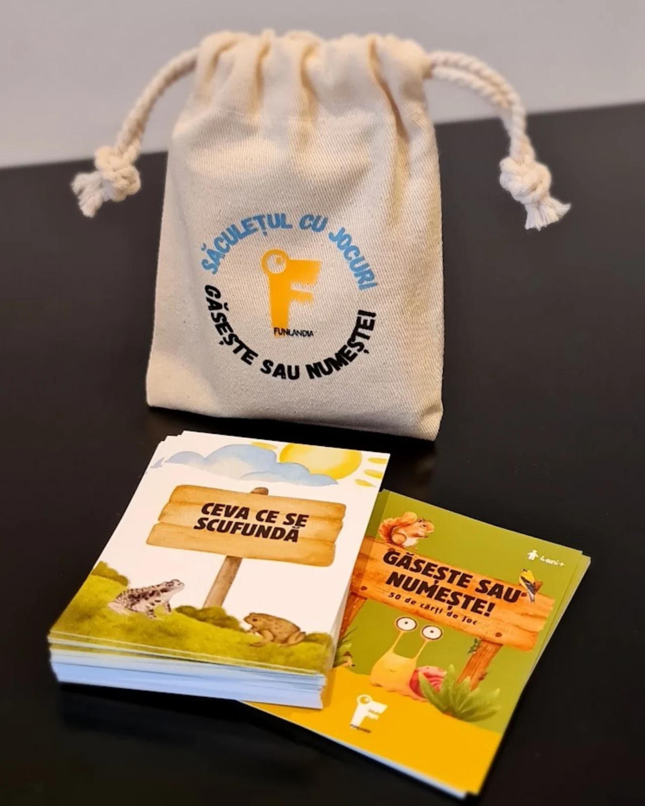 Un joc interactiv si educativ care stimuleaza imaginatia, vocabularul si curiozitatea copiilor, dar si interesul adultilor.Fiecare cartonas iti aduce o provocare: trebuie sa gasesti sau sa numesti un obiect specific pe baza unei descrieri simple.Jocul poate fi jucat atat in interior, acasa sau la gradinita, cat si in aer liber, oferind ore de distractie in familie, intre prieteni sau in grupuri de copii.Jocul incurajeaza copiii sa exploreze, sa isi dezvolte vocabularul si sa isi exerseze abilitatile de observatie.Dezvolta gandirea logicaStimuleaza creativitateaSustine colaborarea si interactiuneaImbunatateste abilitatile de lucru in echipa Dezvolta spiritul de observatie 50 de cartonase de joc rezistente, fine si placute la atingere intr‐un saculet de bumbac adorat de cei mici. Provocarile sunt scurte, usor de inteles si sunt insotite de imagini frumoase, in culori pastelate. Textul este scris cu litere de tipar, pentru ca micii jucatori sa poata citi chiar ei daca sunt la inceput in invatarea alfabetului.