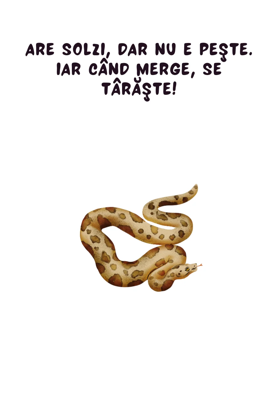 Jocul le stimuleaza celor mici imaginatia, creativitatea si gandirea abstracta. Pachetul contine 45 de carti de joc cu ghicitori despre animale, legume si fructe, natura si obiecte si un cartonas cu idei de joaca. Fiecare cartonas contine ghicitoarea sub forma de text si imaginea reprezentativa a raspunsului corect.Stimuleaza gandirea abstractaStimuleaza memoriaDezvolta limbajul si vocabularul Cateva idei de joaca mai jos.1. Mama/Tata & copilul: cititi copilului ghicitoarea de pe cartonas, iar dupa ce ofera raspunsul, intoarceti cartonasul pentru a-i arata imaginea, respectiv raspunsul corect. Asezati cartonasele ghicite corect intr-un teanc, iar cele neghicite in alt teanc. Numarul cartonaselor corecte poate reprezenta minutele pentru o alta activitate preferata de cel mic.2. 2-3 echipe de cate 2 copii (la petreceri, gradinita, cu prietenii, etc.): un adult imparte cartile in mod egal (2 sau 3 seturi), apoi ridica din fiecare set cate o carte si o citeste fiecarei echipe - echipa care ghiceste mai multe, castiga. Sau se citeste cate o carte din intregul set si echipa care spune prima raspunsul corect primeste cartea respectiva - la final se numara cate carti a ghicit fiecare echipa.3. Copil vs. Copil: un adult/parinte citeste rand pe rand ghicitorile, copilul care spune primul raspunsul corect, primeste cartea. La final se numara cate carti a ghicit fiecare