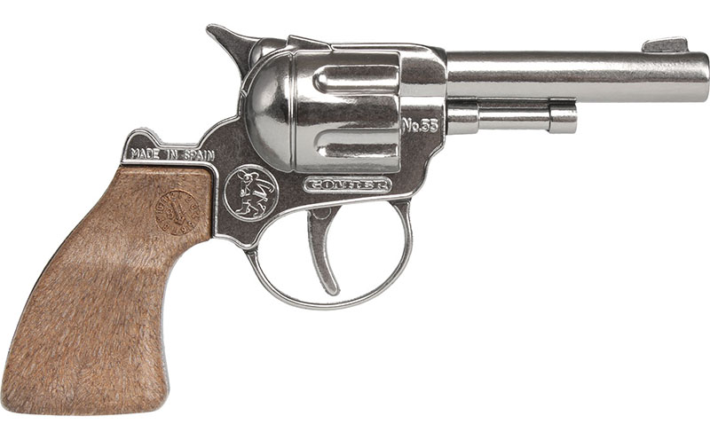 Revolver tip cowboy din metal. NU foloseste capse. Fabricat in Spania.La Gonher, respectam Normele de Siguranta pentru Jucarii EN-71, ASTM si versiunile lor actualizate, reducand la minimum impactul asupra mediului.In plus, Gonher adera la Codul de Bune Practici de Munca al Consiliului International al Industriei Jucariilor (ICTI) si este membru al procesului ICTI CARE.