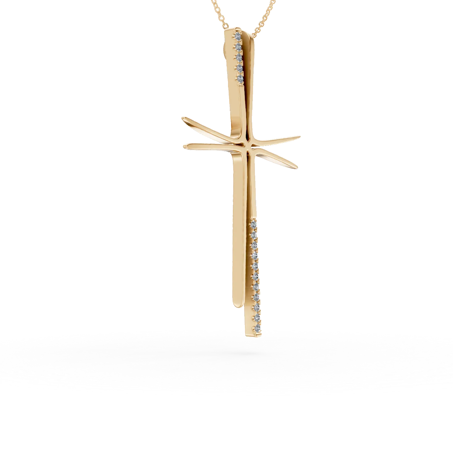 Un simbol clasic reinterpretat modern: lantul cu pandantiv cruce din aur galben, impodobit cu zirconii stralucitoare. O bijuterie ce imbina eleganta cu semnificatia personala, potrivita pentru a fi purtata zi de zi sau la ocazii speciale. Poarta o declaratie de stil si spiritualitate by DAAR!