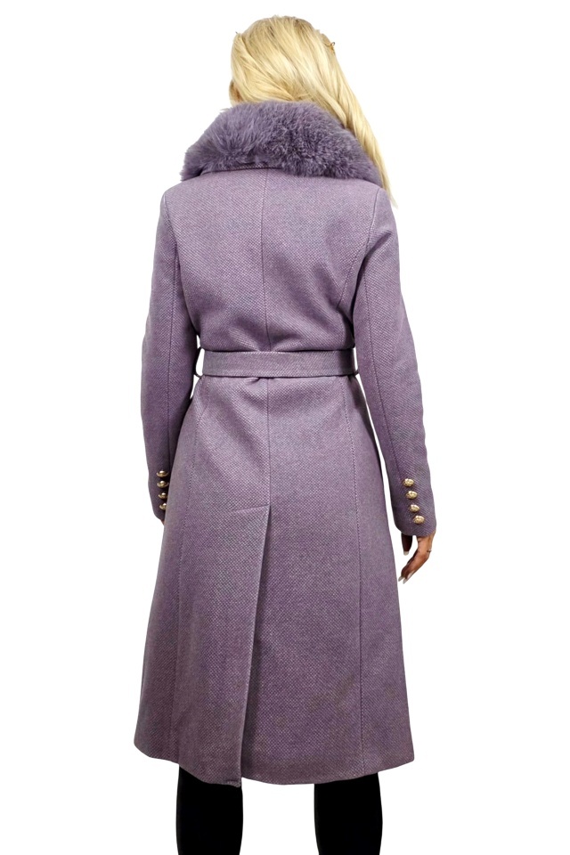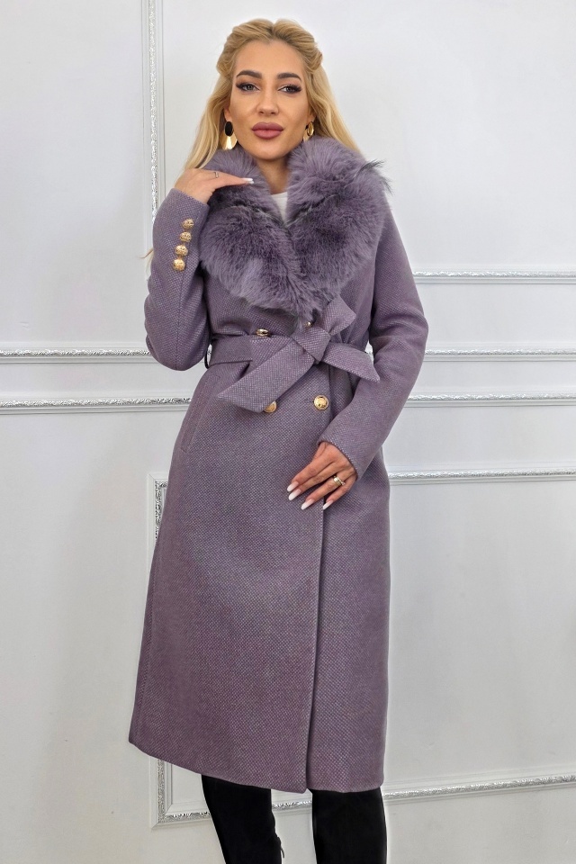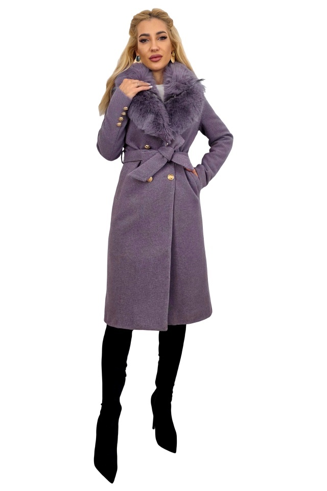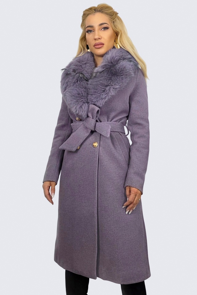 Palton MABELL, cu textura ripsata, cordon si guler detasabil, MOV