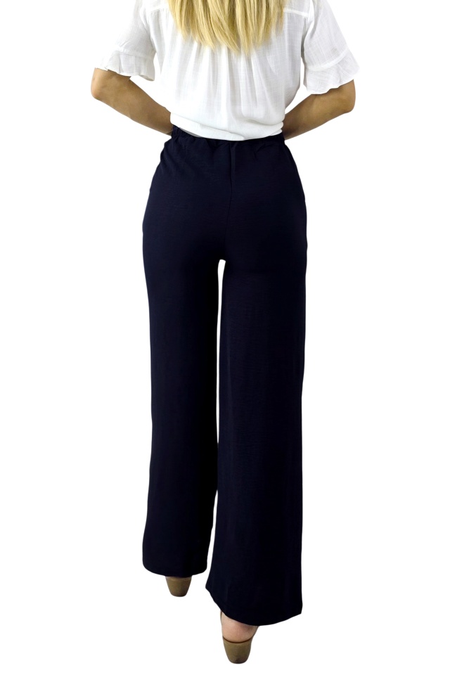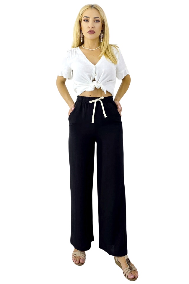 Pantaloni lungi de zi, bumbac MERON, cu snur si croi larg, Negru