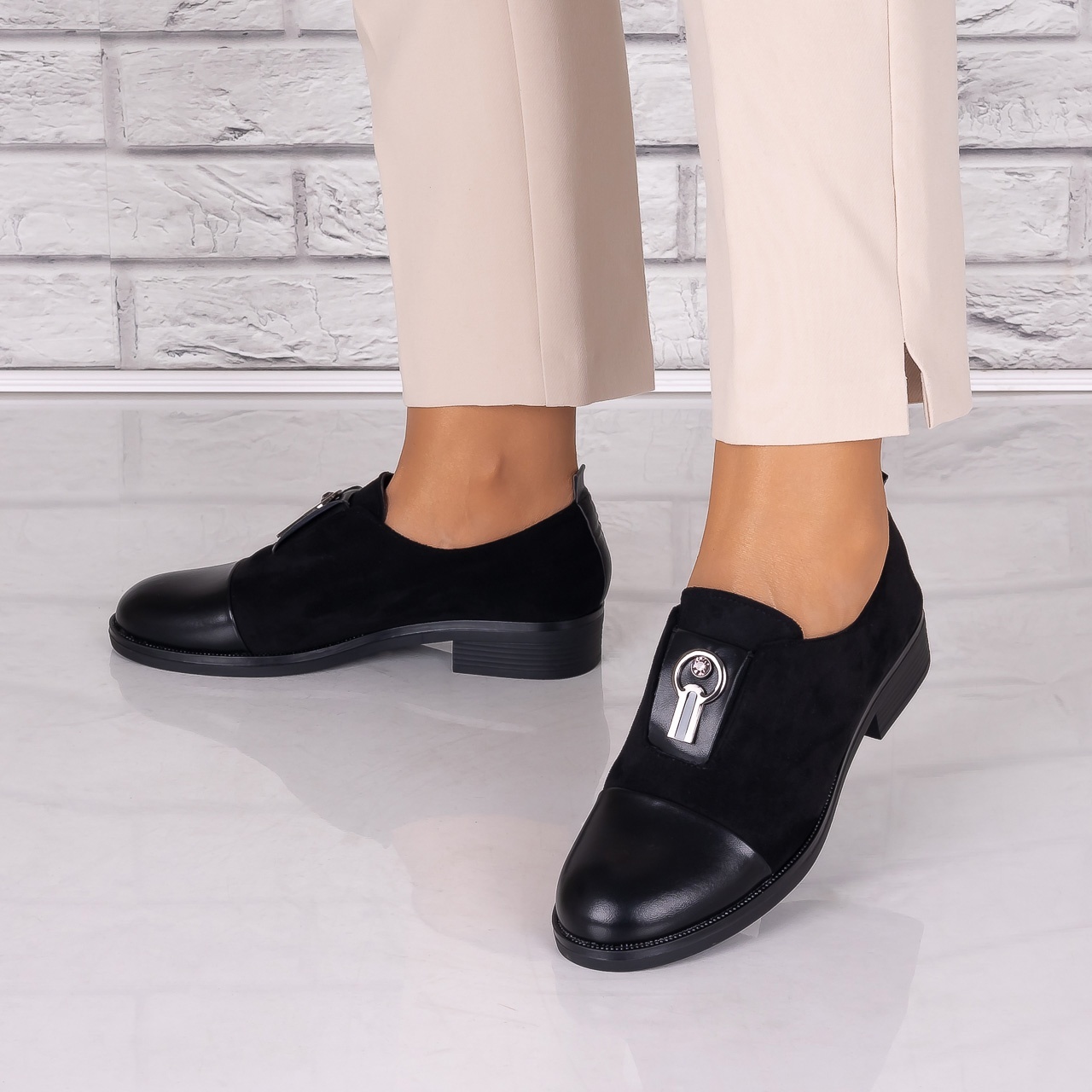 Pantofi dama casual Negri piele ecologica Intoarsa Pietrina