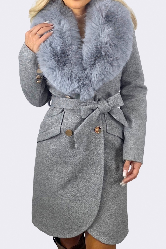 Pardesiu dama, cu lana, Tamira, blanita si colturi rotunjite, Gri