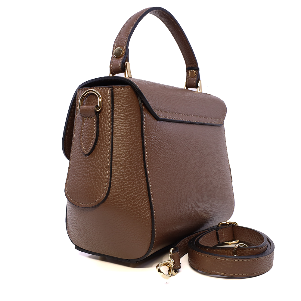 Poșetă satchel femei Enzo Bertini maro din piele naturală cu logo 154POSP3371M