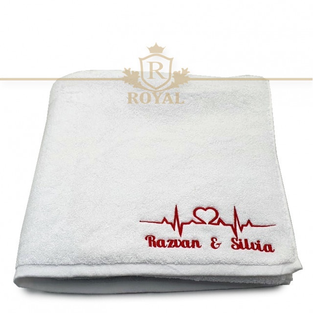 Cuprinde: 1buc. Prosop Corp 70x140cm -680gr/mp-20/2 Firul este 20/2 Greutatea specifica a prosopului este de 680gr/mp Materiel: 100%Bumbac Tara Origine: Pakistan Temperatura de Spalare: 90°C Broderia este cea din imagine Prosopul este prevazut cu agatatoare de cuier. Sunt confortabile, moi si absorb foarte bine apa de pe piele.