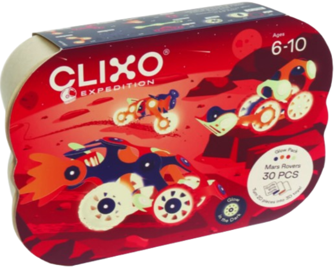 Clixo este un joc de constructie inovator si plin de creativitate, care permite micutilor sa creeze si sa construiasca 3D din forme flexibile 2D cu magneti puternici.Caracteristici:un set de constructie flexibil si magnetic, care straluceste in intuneric, echipat cu roti pentru teren accidentat, lansatoare de foc si piese personalizate noi. Construieste vehicule, motociclete si drone spatiale pentru a explora peisajele martiene cu cele 30 de piese in 12 forme Clixo uniceforme unice, piese flexibile, magneti puternici, accesorii distractive, activitati pline de inspiratie si posibilitati infinite de constructiemagnetii puternici si siguri fac clic si se fixeaza in pozitiepiesele Clixo sunt flexibile, ceea ce inseamna ca o singura forma se poate indoi si conecta in multe moduri diferiteseturile Clixo se bazeaza pe programa scolara STEAM (science, technology, engineering, arts and mathematics) in care copiii invata la o singura materie notiuni din stiinta, tehnologie, inginerie, arta si matematicacontribuie la dezvoltarea abilitatilor stiintifice, spatiale si tactile, transformand forme plate in obiecte 3Delementele din design implica, de asemenea, anumite constrangeri, care ajuta la dezvoltarea gandirii creative, a rabdarii si a persistenteipachetul Clixo este compact si usor, astfel ca il poti lua cu tine oriunde, fiind pregatit pentru noi aventuri pline de creativitate mereupentru a facilita depozitarea piesele se stivuiesc cu usurinta si in plus sunt sigure pentru masina de spalat vasetoate piesele Clixo sunt modulare si astfel seturile sunt compatibile intre elepiese realizate din materiale non-toxice ( ambalaj: bambus reciclat; piese: hartie sintetica reciclabila si durabila + magneti puternic incorporati pentru siguranta maxima)Setul include:30 de piese in 12 forme Clixo uniceDimensiune ambalaj: 23 x 16.5 x 7 cm Instructiuni intretinere piese Clixo: utilizati o carpa umeda pentru a sterge piesele sau le puteti splala la masina de spalat vase. Pentru siguranta, puteti igieniza inclusiv cu solutie de alcool izopropilic (70%) si apoi sa stergeti cu o carpa moale (daca este necesar).Varsta recomandata: 6 - 10 aniSiguranta este o prioritate pentru Clixo. Toate produsele Clixo au trecut prin numeroase teste de laborator si sunt conforme cu standardele federale de siguranta a jucariilor, inclusiv:ASTMEN71Propunerea 65 din CaliforniaAtentie! Aceasta jucarie contine magneti sau componenete magnetice. Magnetii care se lipesc unul de celalalt sau se ataseaza de un obiect metalic in interiorul corpului uman pot provoca accidente grave sau mortale. Cereti imediat asistenta medicala in cazul in care magnetii sunt inghititi sau inhalati. Contraindicat copiilor mai mici de 3 ani.