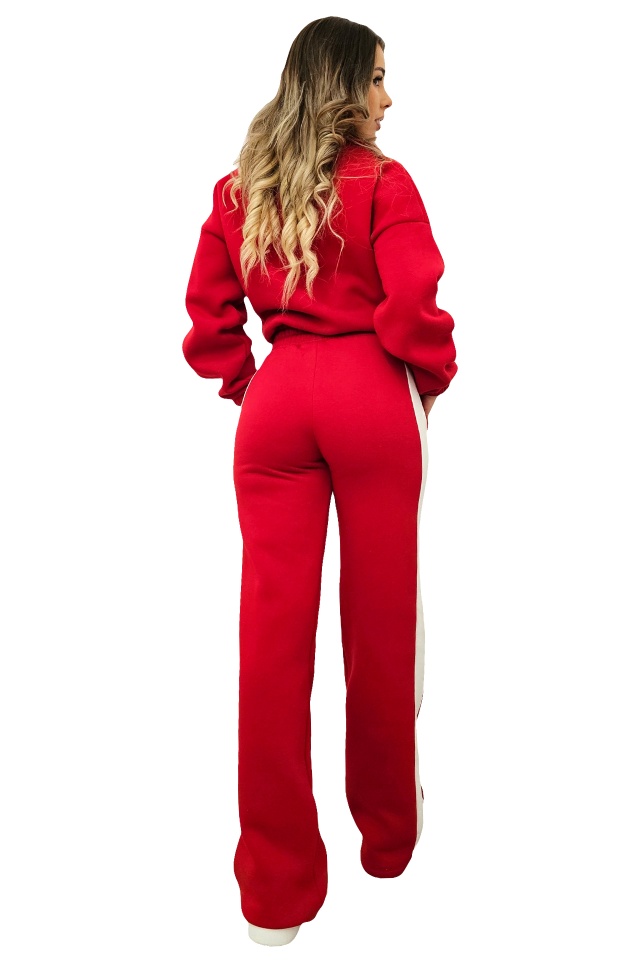 Trening vatuit de dama HeLLena, pantaloni si bluza cu dungi si fermoar, Rosu