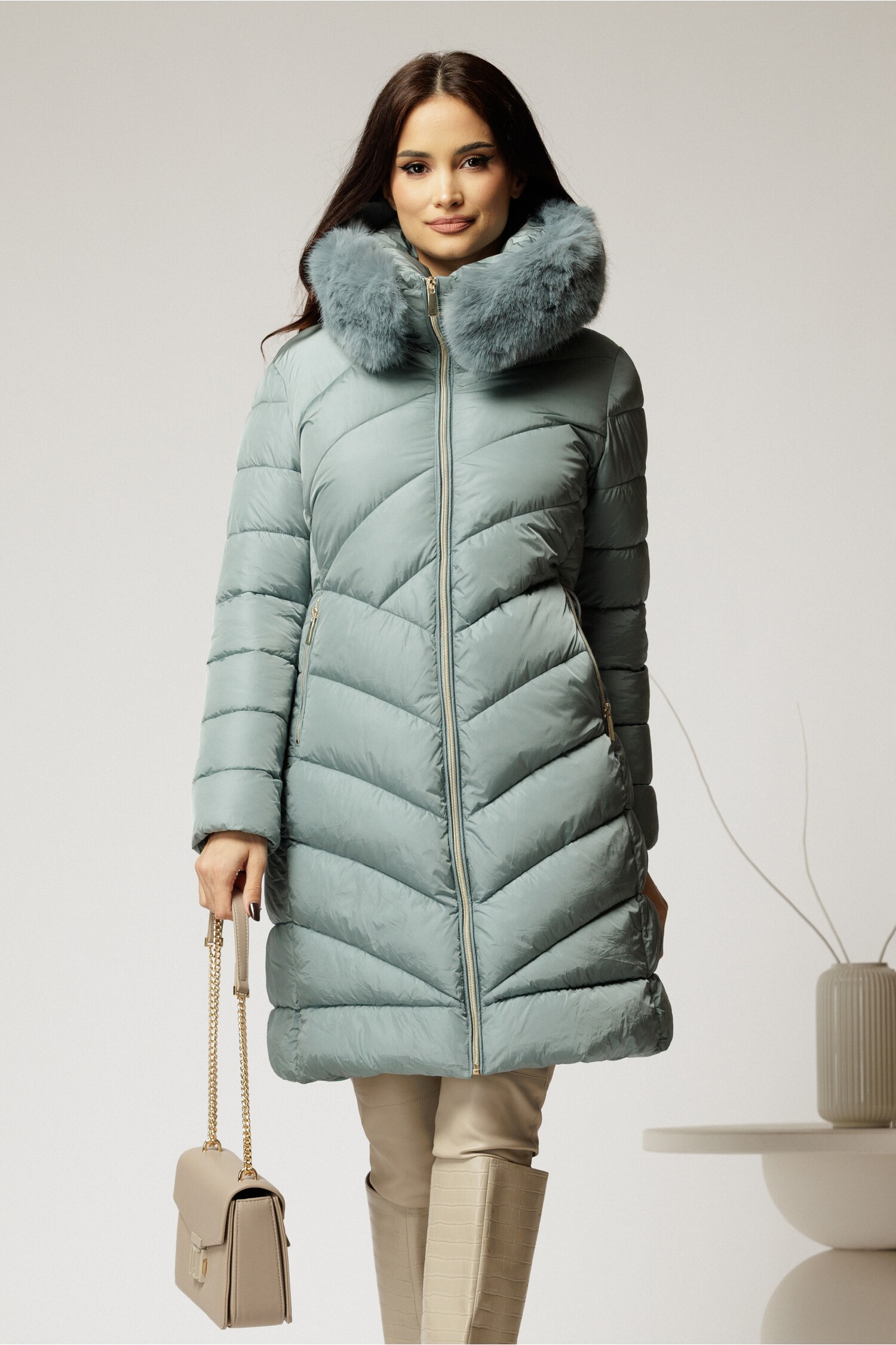 Geaca dama albastru bleu cu gluga si blanita detasabila