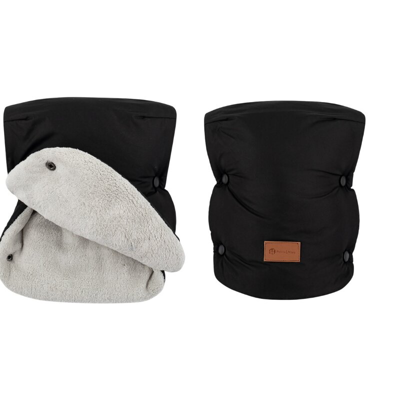 Manusi calduroase pentru carucior, Petite&Mars, Jasie, Pentru vremea rece, Potrivite pentru orice carucior, Impermeabile, Inchidere prin capse, Negru