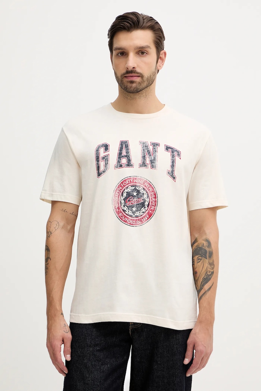Gant tricou din bumbac culoarea bej, cu imprimeu, 2003353
