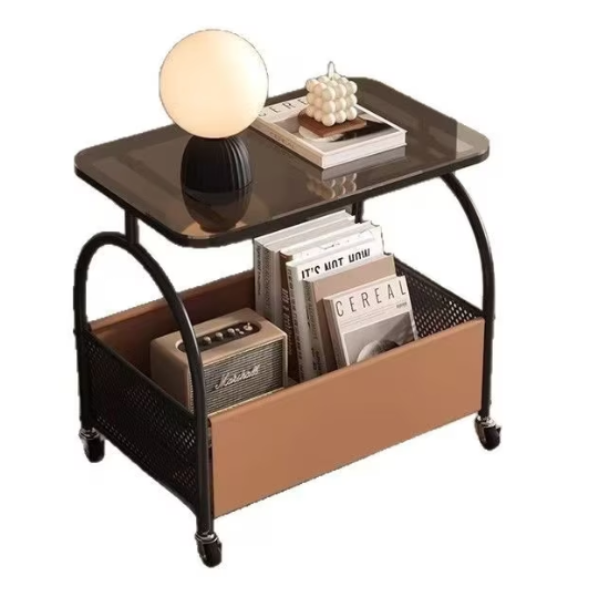 Masuta portabila cu compartiment depozitare blatul din sticla cadru metalic NEAGRA