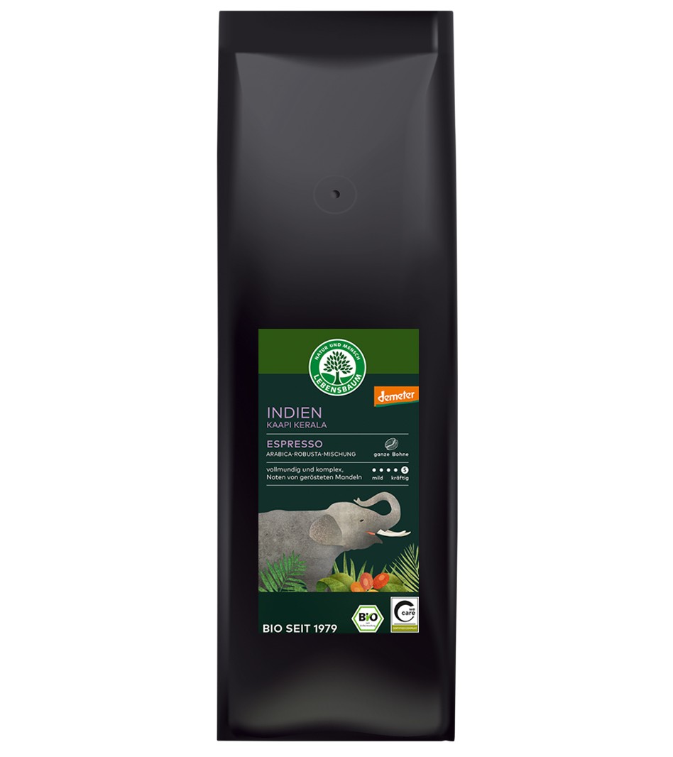 Cafea bio boabe, Espresso Kaapi Kerala selectie Arabica si Robusta, 1000g Lebensbaum