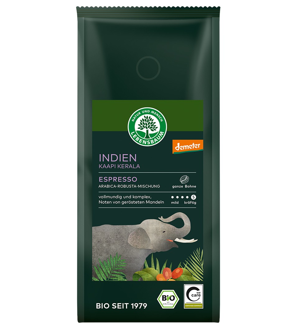 Cafea boabe bio Espresso Kaapi Kerala, 250g Lebensbaum