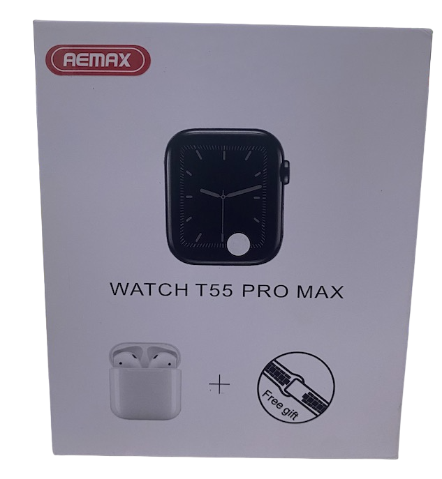 Ceas Inteligent T55 Pro Max cu 2 curele Albe si Casti Wireless
