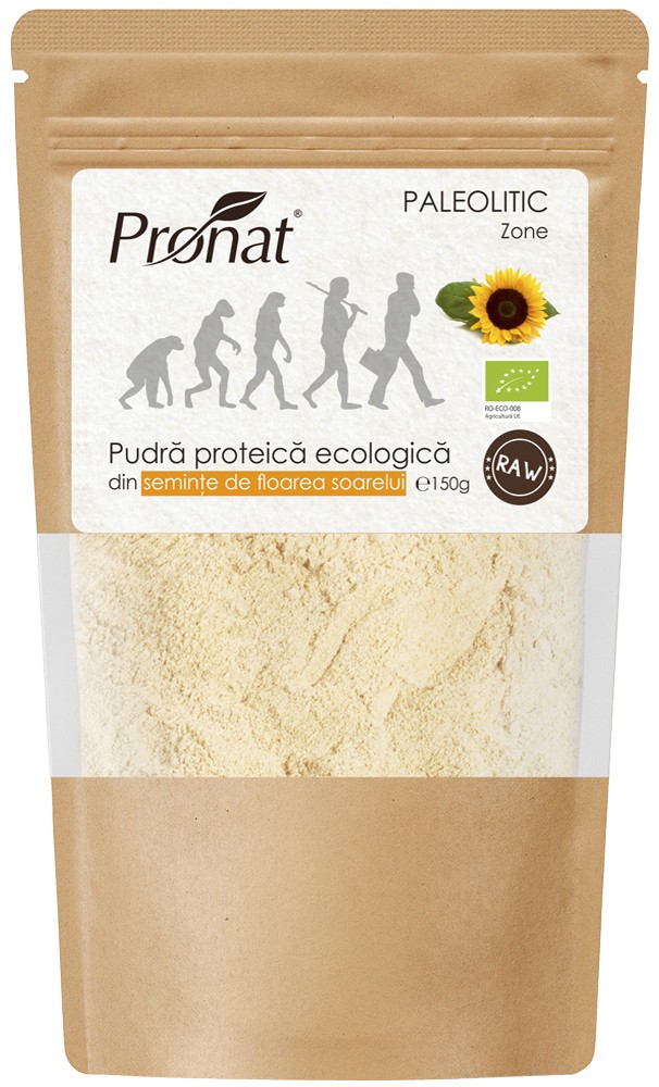 Pudra proteica bio din seminte de floarea soarelui, 150g Pronat