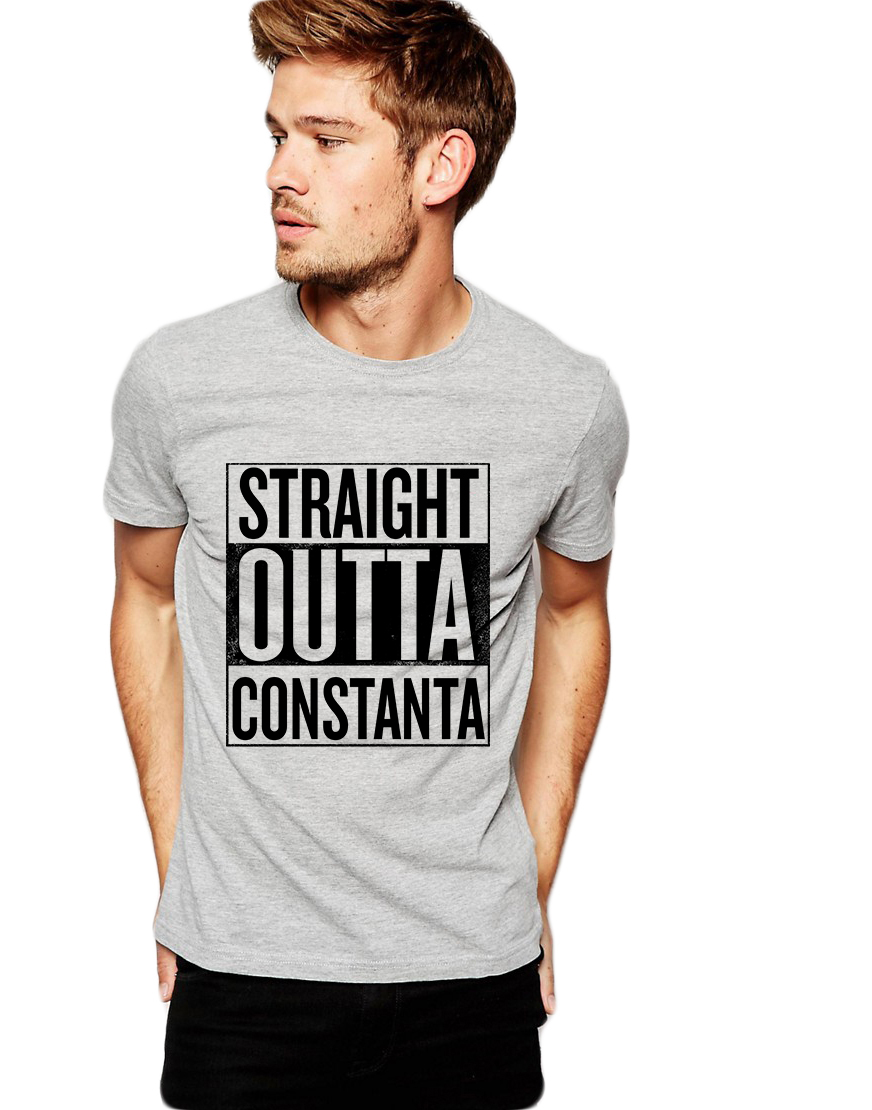Tricou barbati gri cu text negru - Straight Outta Constanta