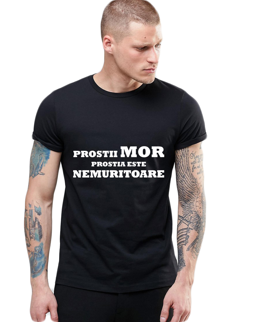 Tricou Negru Barbati - Prostii mor, prostia e nemuritoare