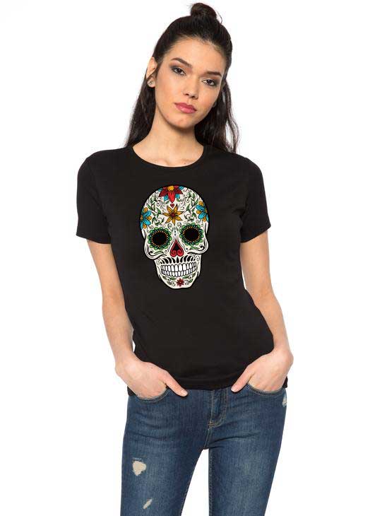 Tricou dama negru - Sugar Skull Colorful