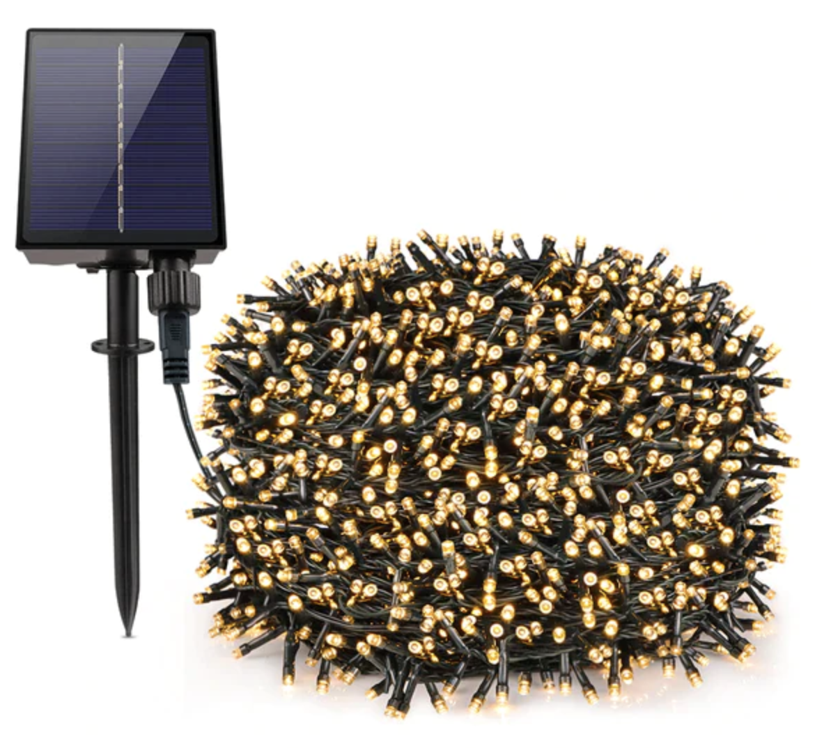 Instalatie solara 500 LED de 50 metri cu telecomanda pentru exterior ALB CALD HS